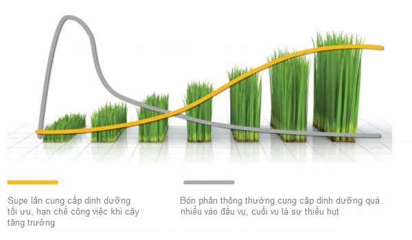 Đặc tính tan chậm đáp ứng nhu cầu của cây trồng bằng cách cung cấp chất dinh dưỡng một cách đều đặn, cân cằng, đầy đủ, và hợp lý khi mà lượng phân được cung cấp không quá nhiều và ồ ạt ngay trong một lần, giúp cây trồng tránh được tình trạng bị thương tổn rễ hay bị ngộ độc phân bón.