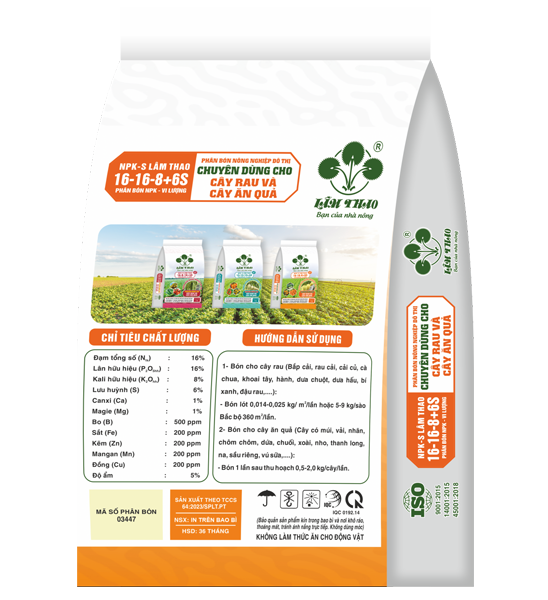 - Tỷ lệ N:P2O5: K2O:S cân đối: phù hợp cho cây rau giai đoạn bón lót và cho cây ăn quả phục hồi sau thu hoạch, cắt cành tạo hình.