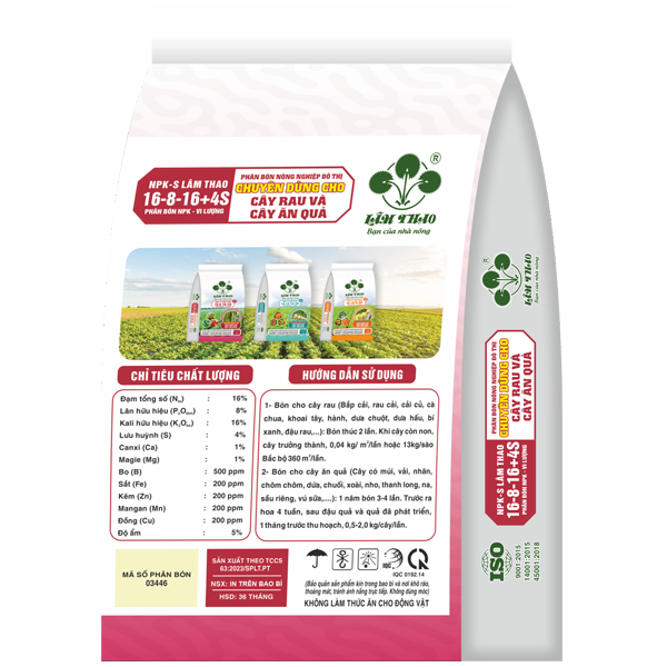 - Tỷ lệ N:P2O5: K2O:S cân đối: phù hợp bón thúc cho cây rau và bón nuôi quả cho cây ăn quả.