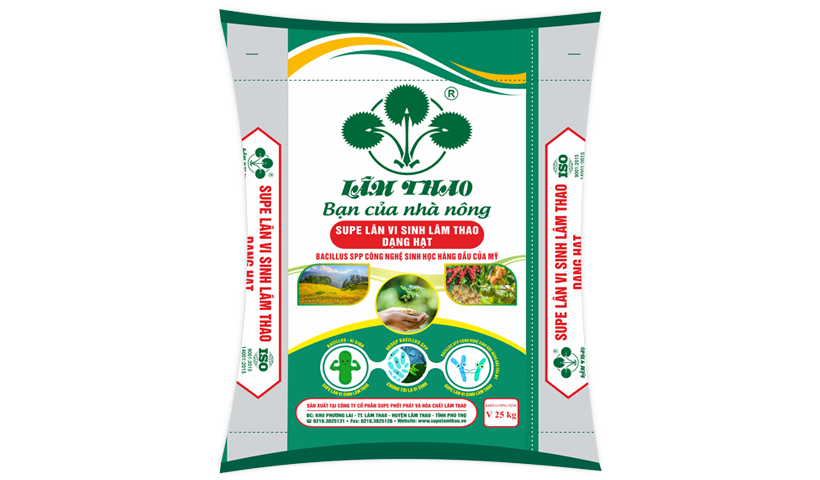 Ðặc biệt, trong Supe Lân vi sinh Lâm Thao ngoài các thành phần nêu trên, còn có bổ sung vi sinh vật. có ích cho cây trồng. Các vi sinh vật này giúp bảo vệ và kích thích bộ rễ phát triển; giúp phân giải các chất dinh dưỡng trong phân bón để trở thành dạng dinh dưỡng cây trồng dễ hấp thụ và hấp thu triệt để hơn, nâng cao hiệu quả sử dụng dinh dưỡng cho cây trồng. |