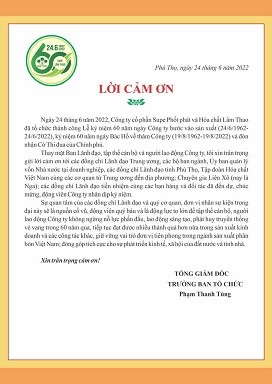 THƯ CẢM ƠN của đồng chí Bí thư Đảng ủy, Tổng Giám đốc Công ty Phạm Thanh Tùng