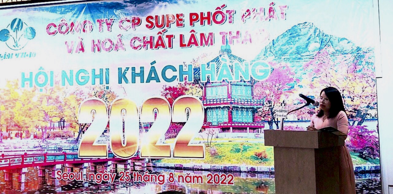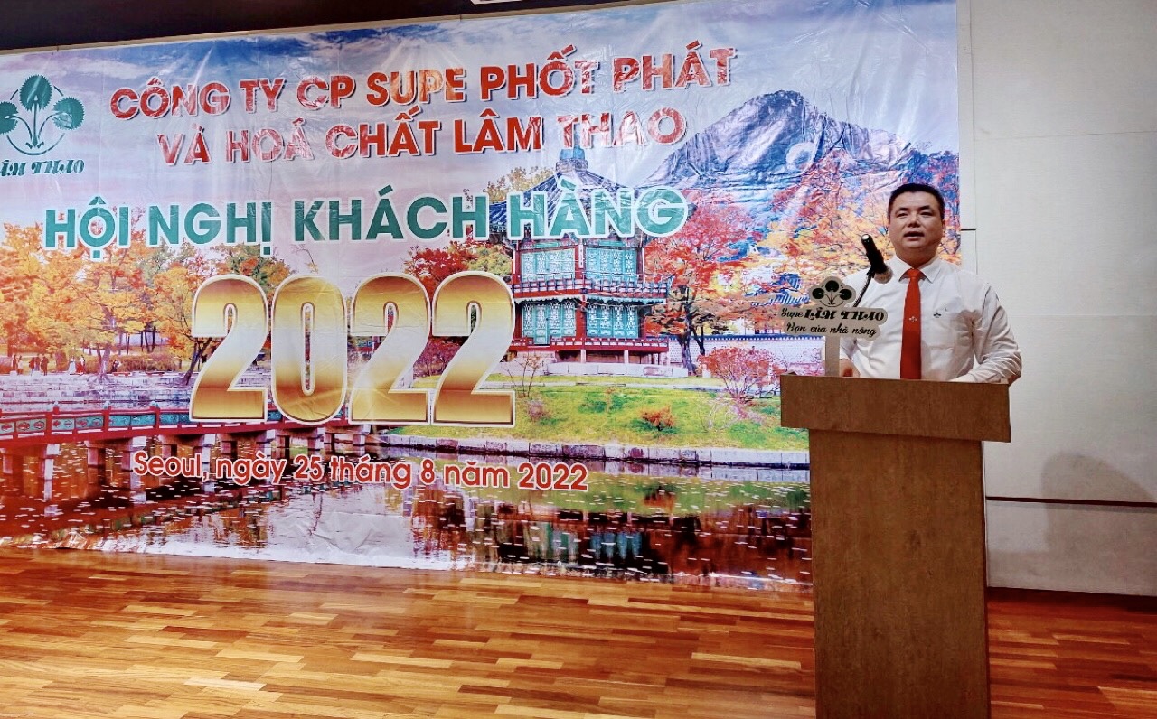 Chiều ngày 25/8/2022, tại Thủ đô Seoul - Hàn Quốc, Công ty CP Supe PP&HC Lâm Thao tổ chức Hội nghị tri ân khách hàng và các đơn vị vận tải sản phẩm của Công ty, đồng thời tổng kết công tác tiêu thụ sản phẩm 6 tháng đầu năm 2022, triển khai nhiệm vụ 6 tháng cuối năm 2022.