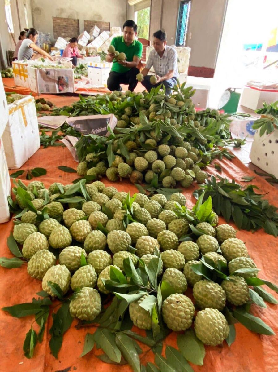 Những quả na to đẹp, thơm ngon được nông dân xếp vào thùng xốp cho khách hàng. Ảnh: T/g