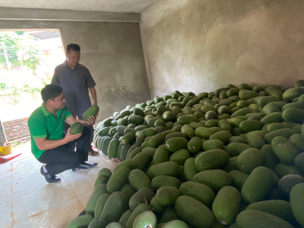 Ông Lường Văn Yên, Chủ tịch Hội Nông dân xã Địa Linh giới thiệu lứa bí xanh thơm mới thu hoạch. Ảnh: T/g