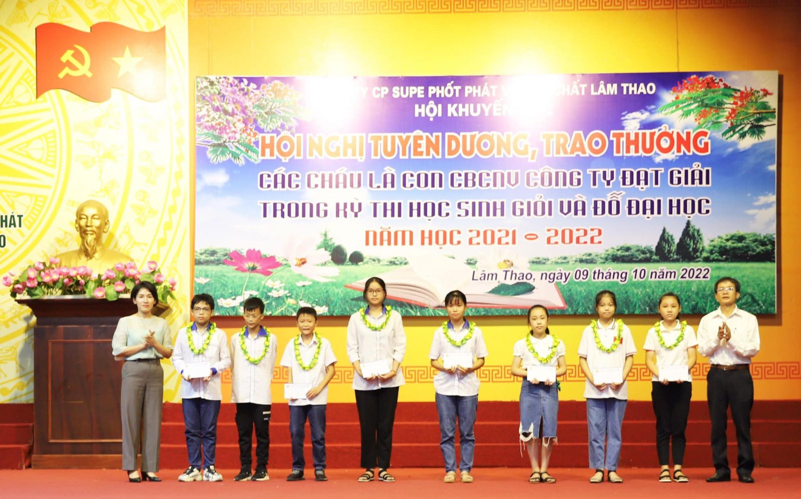 Trong những năm qua, Công ty CP Supe PP&HC Lâm Thao luôn triển khai có hiệu quả chăm sóc, giáo dục TNNĐ. Đối với công tác khuyến học, khuyến tài cũng luôn nhận được sự quan tâm, đồng tình ủng hộ của các cấp lãnh đạo cũng như toàn thể CB, người lao động Công ty. Đây là hoạt động có ý nghĩa tốt đẹp, mang tính xã hội hoá giáo dục cao, góp phần cổ vũ, động viên, khích lệ tinh thần học tập và rèn luyện của các cháu, đồng thời, định hướng cho thế hệ trẻ mục tiêu phấn đấu học để biết và học để làm người có ích cho xã hội.