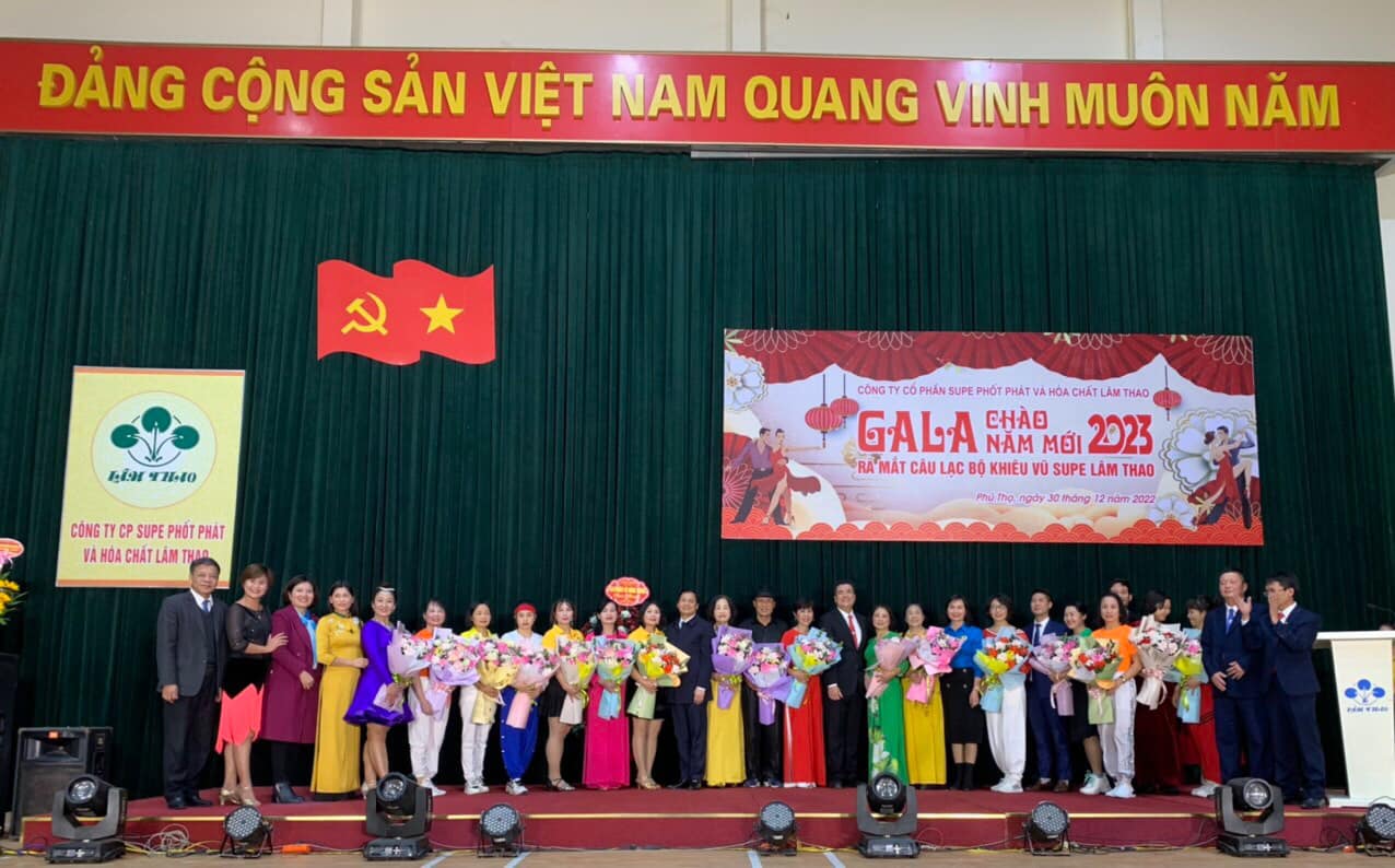 Thiết thực chào mừng Công ty cổ phần Supe Phốt phát và Hóa chất Lâm Thao hoàn thành xuất sắc kế hoạch sản xuất kinh doanh năm 2022, tối ngày 30 tháng 12 năm 2022, tại Nhà thi đấu thể thao Supe, Công ty long trọng tổ chức Chương trình “Gala chào năm mới” ra mắt Câu lạc bộ khiêu vũ Supe Lâm Thao của gần 100 thành viên là các cán bộ, người lao động đã và đang làm việc tại Công ty cùng nhân dân trên địa bàn.