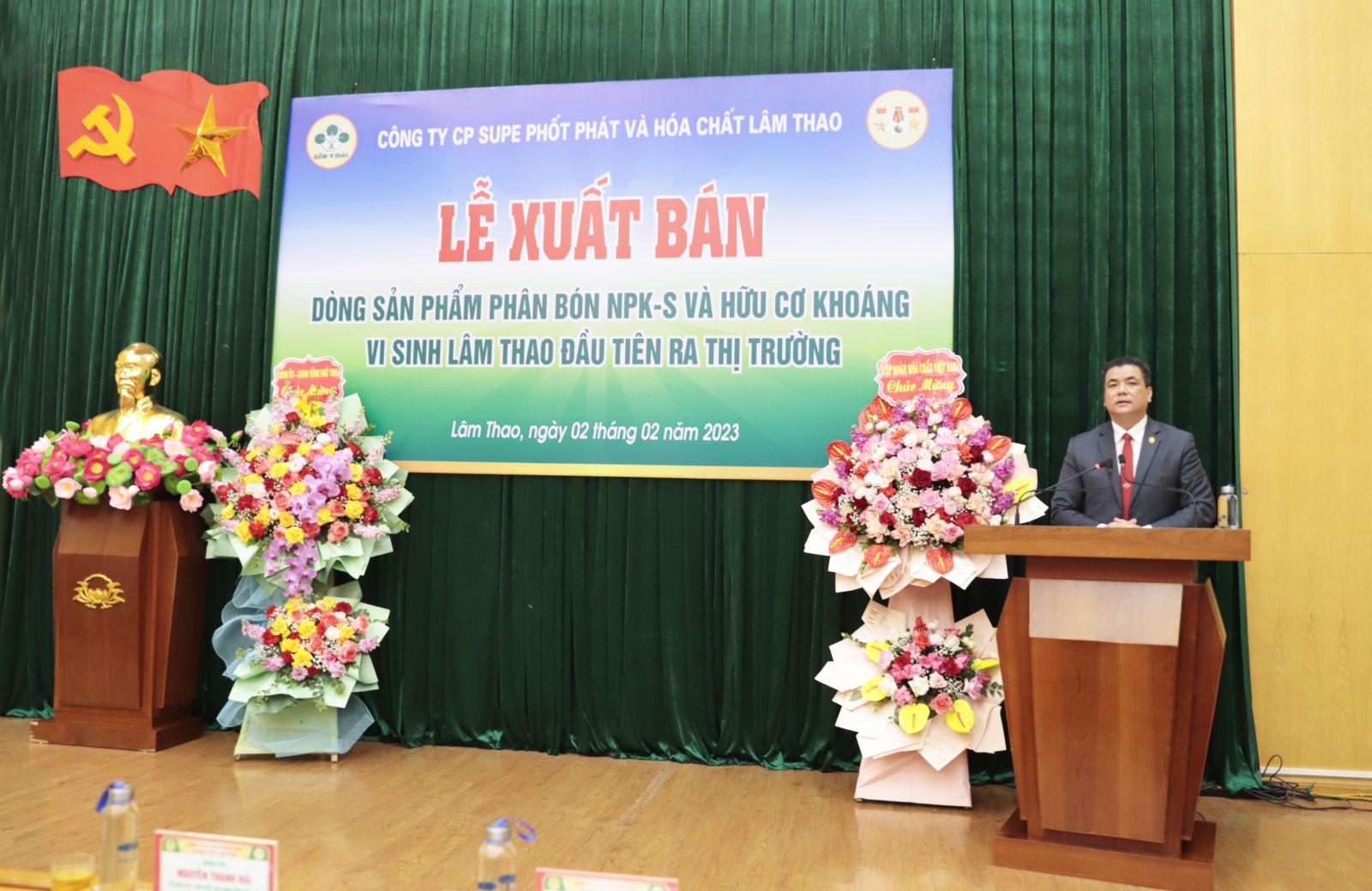 Tại buổi Lễ, ông Phùng Hà, Phó Chủ tịch, Tổng Thư ký Hiệp hội Phân bón Việt Nam; Tiến sỹ Bùi Huy Hiền, Phó Chủ tịch Hội Khoa học Đất Việt Nam; ông Nguyễn Thanh Hải, Uỷ viên Ban Thường vụ Tỉnh ủy, Phó Chủ tịch UBND tỉnh Phú Thọ; ông Nguyễn Phú Cường, Bí thư Đảng uỷ, Chủ tịch Hội đồng thành viên Tập đoàn Hoá chất Việt Nam cùng đại diện Nhà phân phối sản phẩm phân bón Lâm Thao đã phát biểu ghi nhận, chúc mừng và đánh giá cao những thành quả lao động sáng tạo, bước phát triển nhảy vọt của Công ty trong lĩnh vực sản phẩm mới mà Công ty đưa ra thị trường trong những năm gần đây cùng với hai dòng sản phẩm phân bón mới NPK-S vi sinh và Hữu cơ khoáng vi sinh Lâm Thao trong thời gian này đã đáp ứng xu thế phát triển nền nông nghiệp hữu cơ, nông nghiệp xanh; đồng thời góp phần nâng cao hiệu quả sản xuất nông nghiệp trên cả nước.