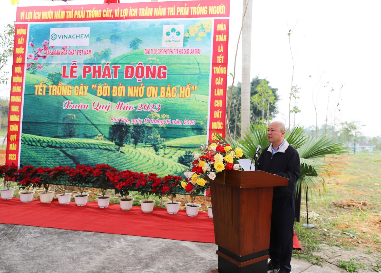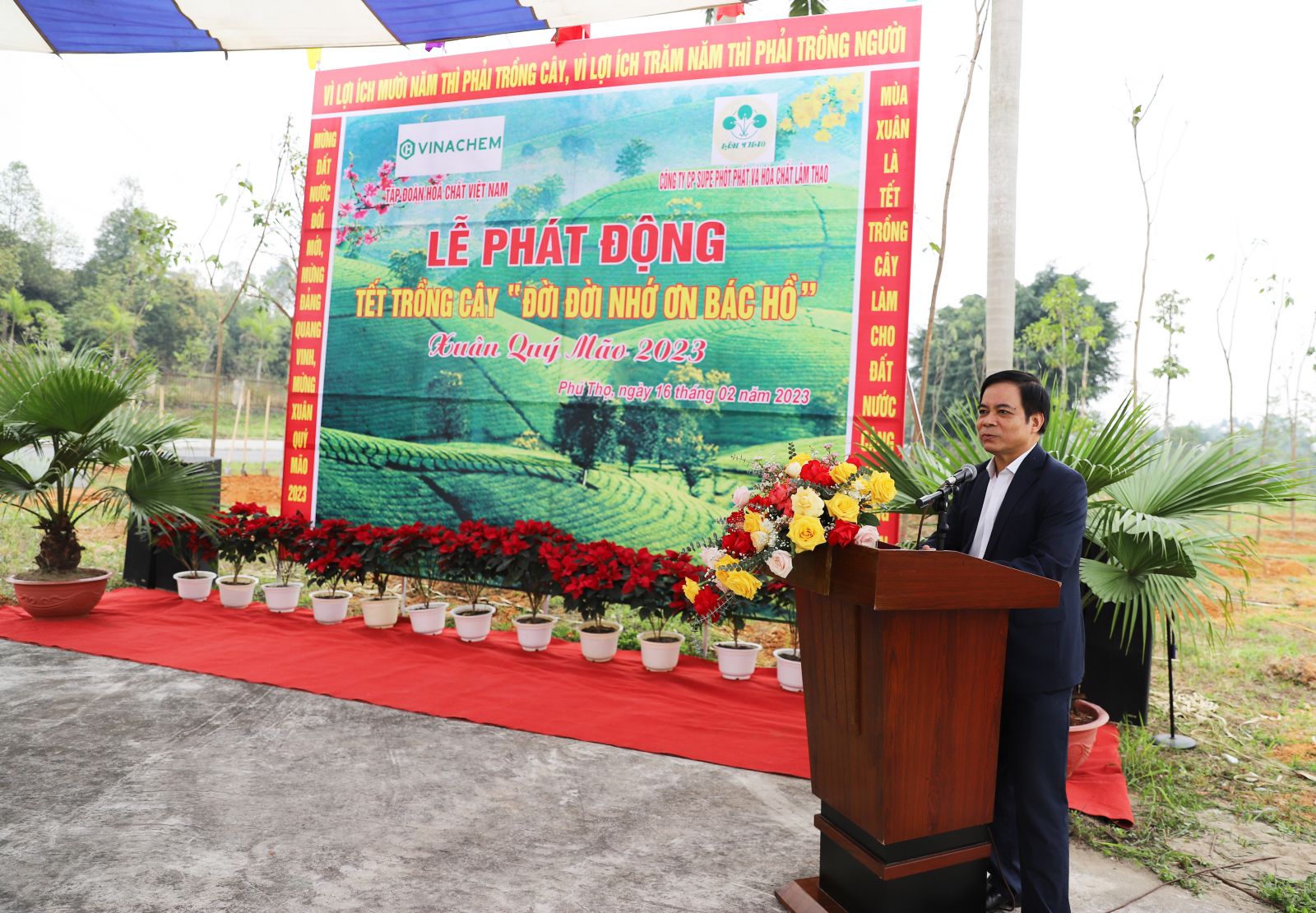 Phát biểu tại buổi Lễ, đồng chí Nguyễn Phú Cường, Bí thư Đảng uỷ, Chủ tịch Hội đồng thành viên Tập đoàn Hóa chất Việt Nam cho biết: Thực hiện lời dạy của Bác, Tập đoàn Hóa chất Việt Nam, Công ty cổ phần Supe Phốt phát và Hóa chất Lâm Thao luôn xác định việc trồng cây xanh là việc làm hết sức quan trọng, gắn liền với quá trình phát triển toàn diện của quê hương, đất nước không chỉ cho hôm nay, mà còn cho các thế hệ mai sau. Nhất là trong bối cảnh hiện nay khi biến đổi khí hậu toàn cầu, thiên tai đã và đang diễn ra ngày càng phức tạp, ảnh hưởng lớn đến các mặt của đời sống kinh tế - xã hội.
