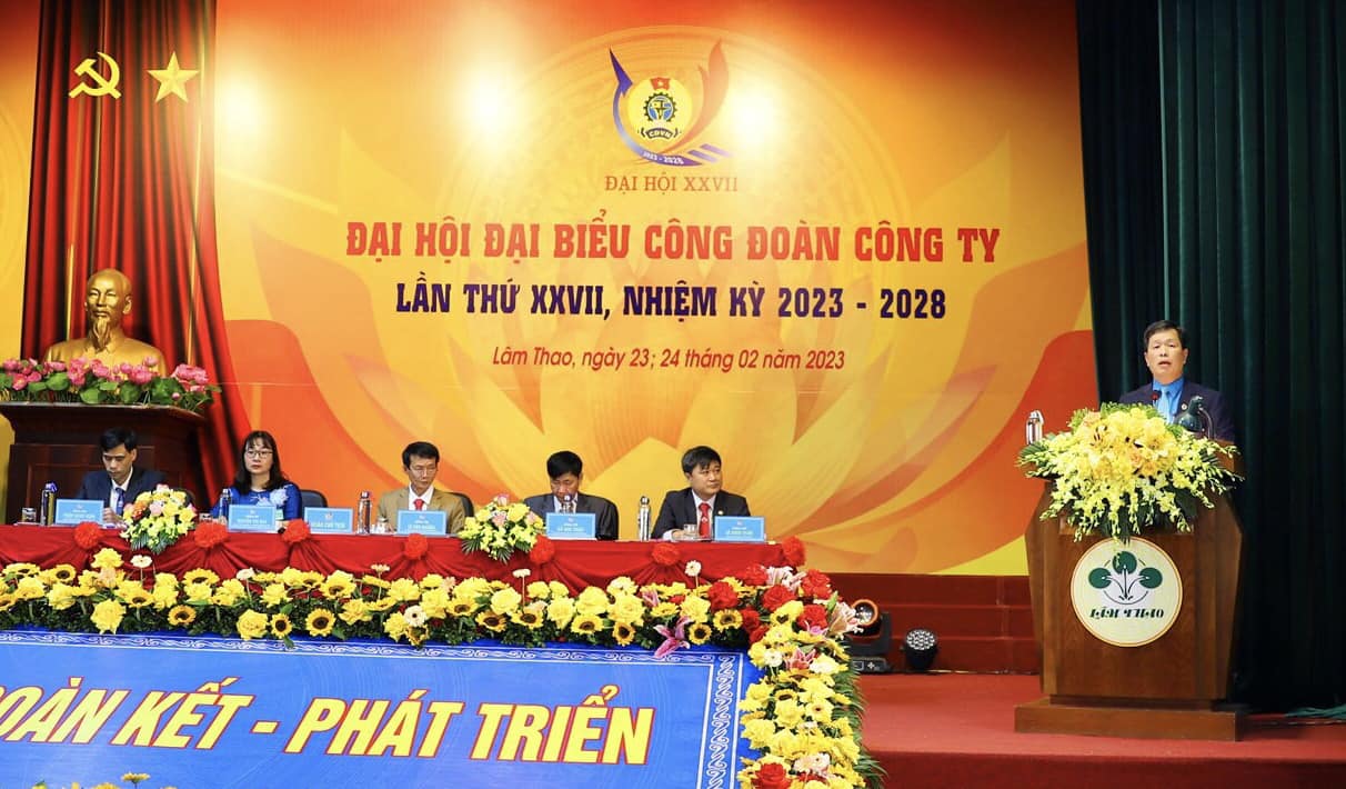 Trong không khí trang trọng, dân chủ và đổi mới, Đại hội Công đoàn Công ty nhiệm kỳ 2023-2028 đã tiến hành nhiều nội dung quan trọng nhằm tổng kết, đánh giá những kết quả đạt được, chỉ ra những hạn chế, nguyên nhân và rút ra những bài học kinh nghiệm từ quá trình tổ chức triển khai thực hiện Nghị quyết Đại hội nhiệm kỳ 2017 - 2023, đồng thời xác định mục tiêu, phương hướng nhiệm vụ của tổ chức Công đoàn 5 năm tới (2023 - 2028) để tiếp tục xây dựng tổ chức Công đoàn Công ty ngày càng vững mạnh, góp phần tích cực vào sự phát triển của Công ty.