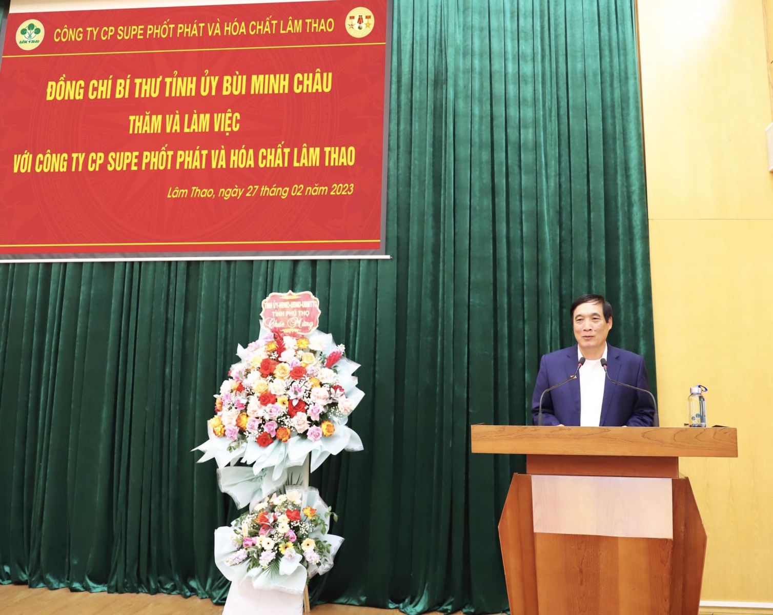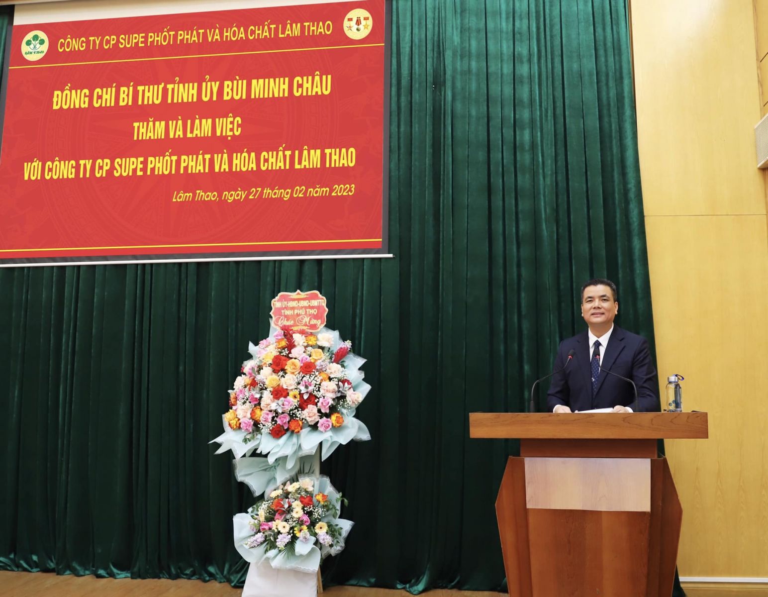 Sáng ngày 27 tháng 2 năm 2023, đồng chí Bùi Minh Châu, Ủy viên Ban Chấp hành Trung ương Đảng, Bí thư Tỉnh ủy, Chủ tịch Hội đồng nhân dân tỉnh, Trưởng đoàn Đại biểu Quốc hội tỉnh Phú Thọ dẫn đầu đoàn công tác của tỉnh và huyện Lâm Thao về thăm, làm việc tại Công ty. Cùng đi với đoàn có các đồng chí Lãnh đạo Tỉnh uỷ, Uỷ ban nhân dân tỉnh, các Sở ban ngành của tỉnh và Lãnh đạo Huyện uỷ, Uỷ ban nhân dân huyện Lâm Thao.