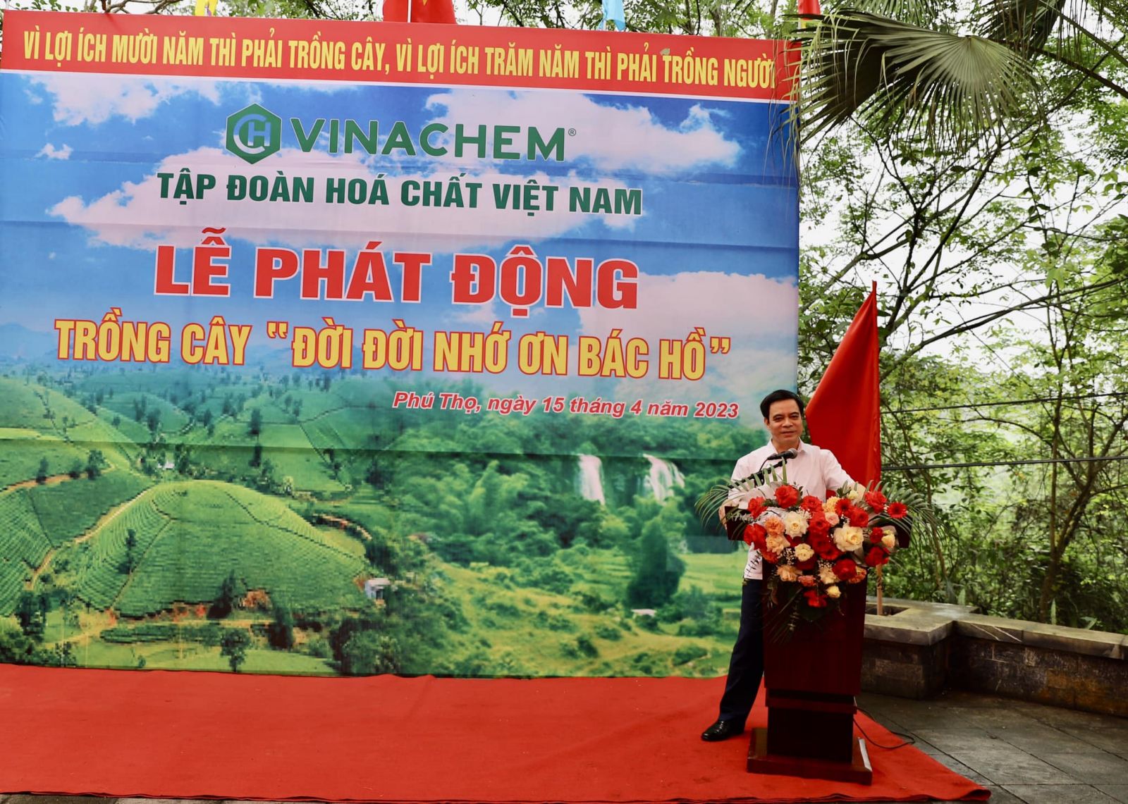 Thay mặt Lãnh đạo Tập đoàn Hóa chất Việt Nam, đồng chí Nguyễn Phú Cường, Bí thư Đảng ủy Tập đoàn cho biết: Chương trình Lễ phát động trồng cây được tổ chức với sự tham gia của Tập đoàn và các đơn vị thành viên trong dịp này với mong muốn hướng về nguồn cội, thể hiện tấm lòng thành kính, biết ơn bằng những việc làm thiết thực và ý nghĩa nhất, góp phần làm đẹp cảnh quan khu Di tích Đền Hùng và đóng góp vào công cuộc bảo vệ môi trường chung của cả nước.
