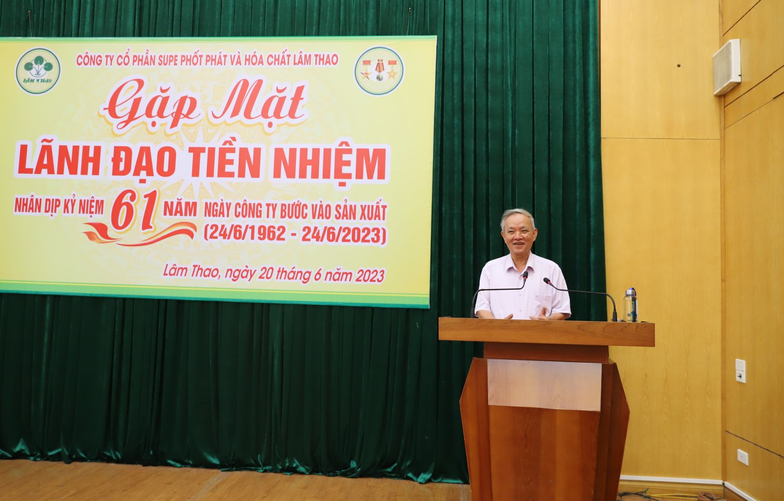 Nhân dịp chào mừng kỷ niệm 61 năm Ngày Công ty cổ phần Supe Phốt phát và Hóa chất Lâm Thao bước vào sản xuất (24/6/1962 – 24/6/2023), chiều ngày 20 tháng 6 năm 2023, Công ty tổ chức gặp mặt các đồng chí nguyên là Lãnh đạo Công ty qua các thời kỳ.