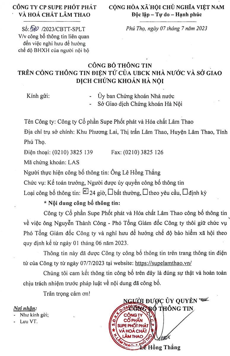 Supe Phốt phát và Hóa chất Lâm Thao là công ty sản xuất phân bón hàng đầu Việt Nam. Công ty bán hàng loạt sản phẩm chất lượng trên khắp Việt Nam và xuất khẩu nhiều nước trên thế giới. Kể từ ngày thành lập vào năm 1962, thương hiệu Supe Lâm Thao đã được coi là sự biểu tượng của chất lượng và tiên phong trong thúc đẩy nông nghiệp Việt Nam