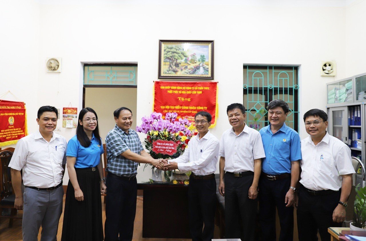 Chào mừng kỷ niệm 94 năm ngày thành lập Công đoàn Việt Nam (28/7/1929-28/7/2023), sáng ngày 28 tháng 7 năm 2023, đồng chí Vũ Xuân Hồng, Phó Tổng Giám đốc Công ty; đồng chí Hoàng Viết Dũng, Phó Bí thư Đảng uỷ Công ty cùng đại diện Lãnh đạo Đoàn Thanh niên và Văn phòng Công ty đã đến tặng hoa chúc mừng Công đoàn Công ty.
