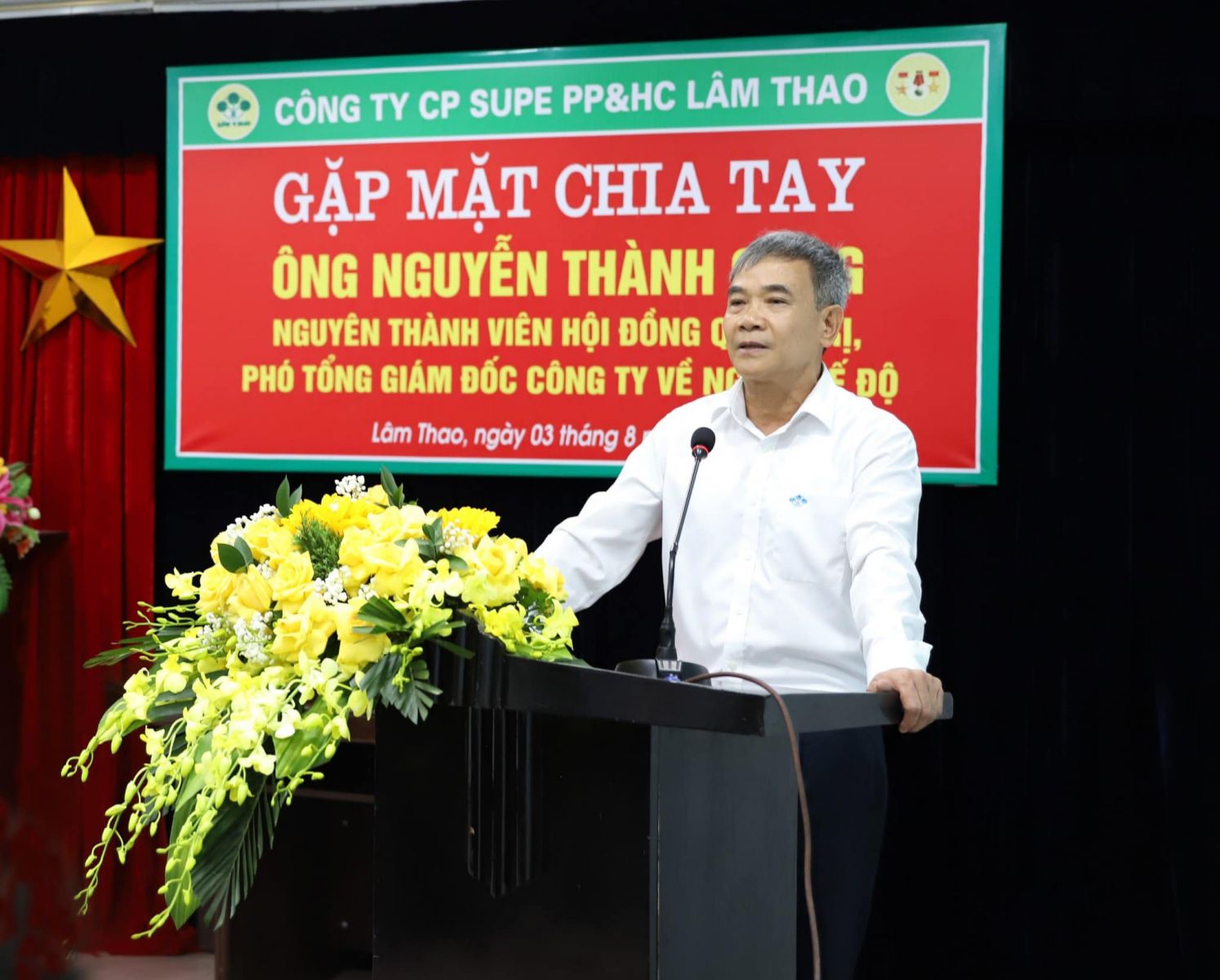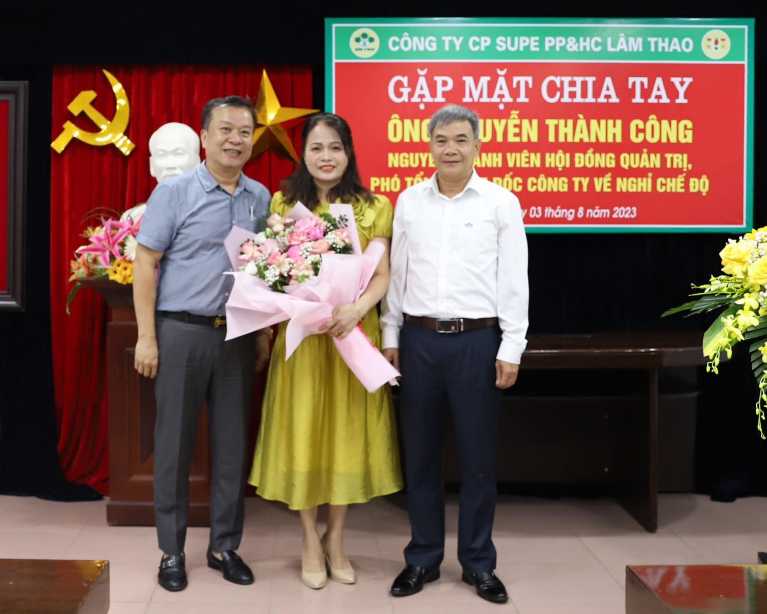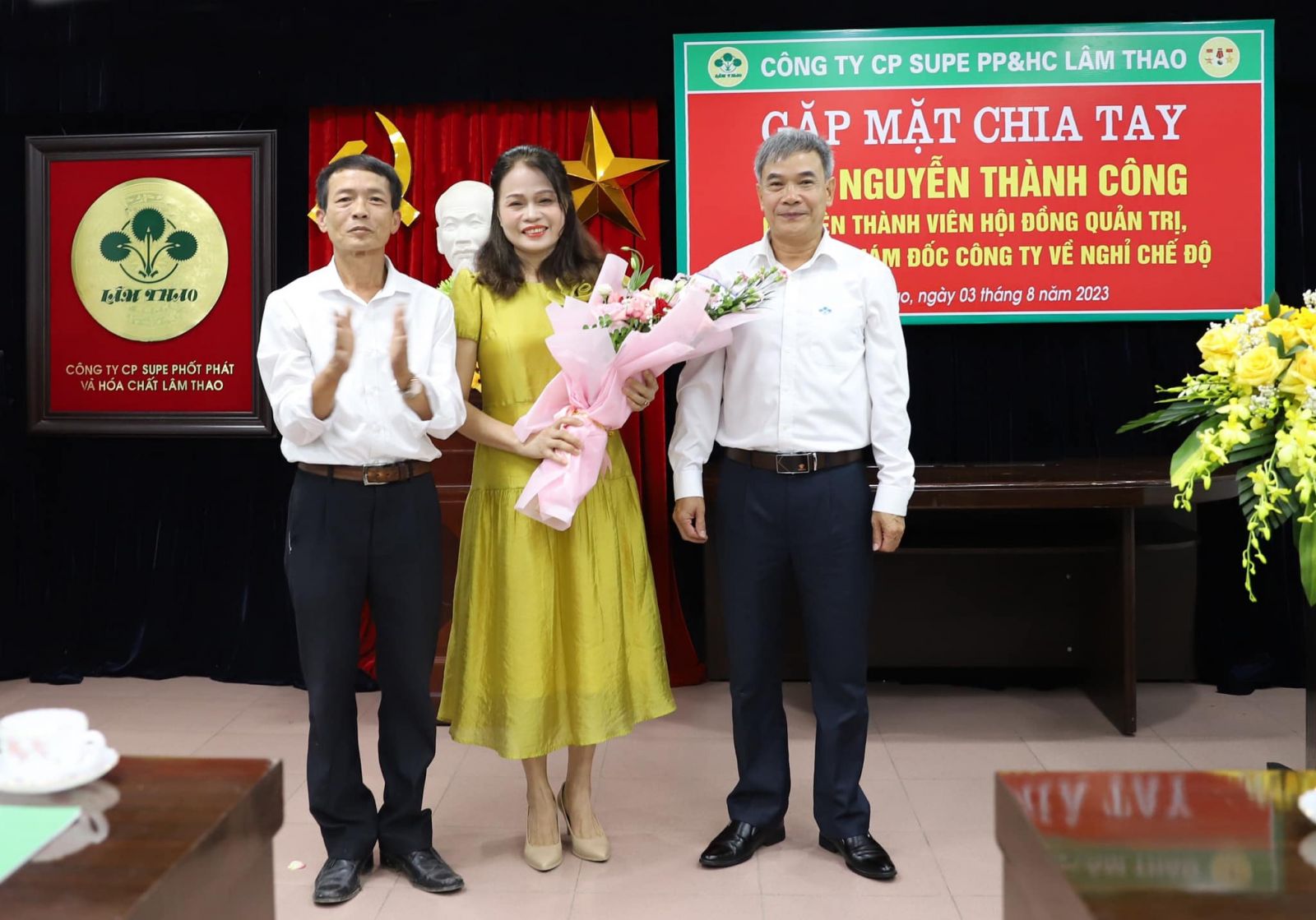 Phát huy tinh thần trân trọng quá khứ và ghi nhận công lao của lớp người đi trước đã đóng góp cho sự phát triển Công ty cổ phần Supe Phốt phát và Hoá chất Lâm Thao, vừa qua, tại Nhà hành chính số 3, Công ty tổ chức gặp mặt chia tay đồng chí Nguyễn Thành Công, nguyên Thành viên Hội đồng Quản trị, nguyên Phó Tổng Giám đốc Công ty về nghỉ hưu theo chế độ của Nhà nước.