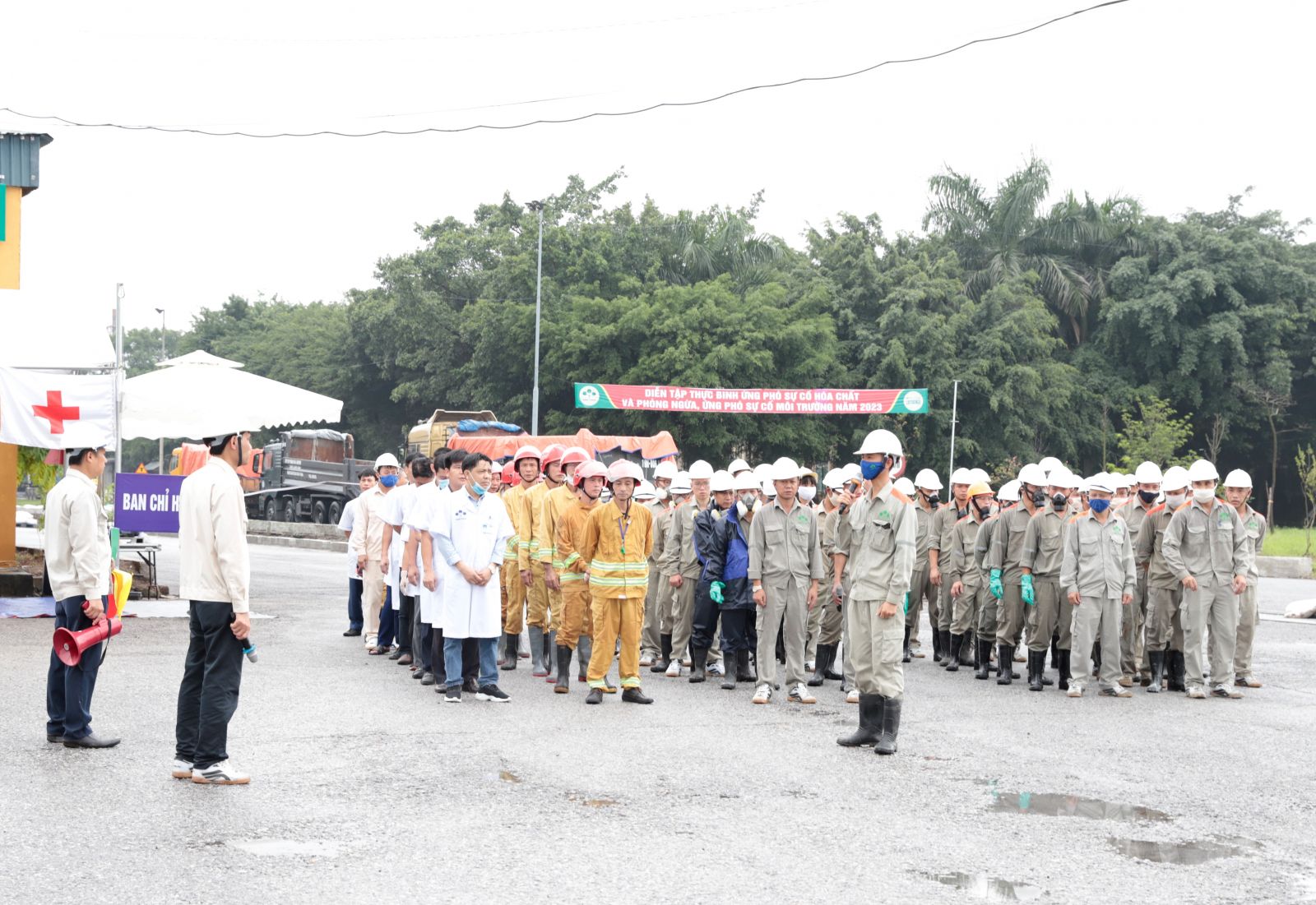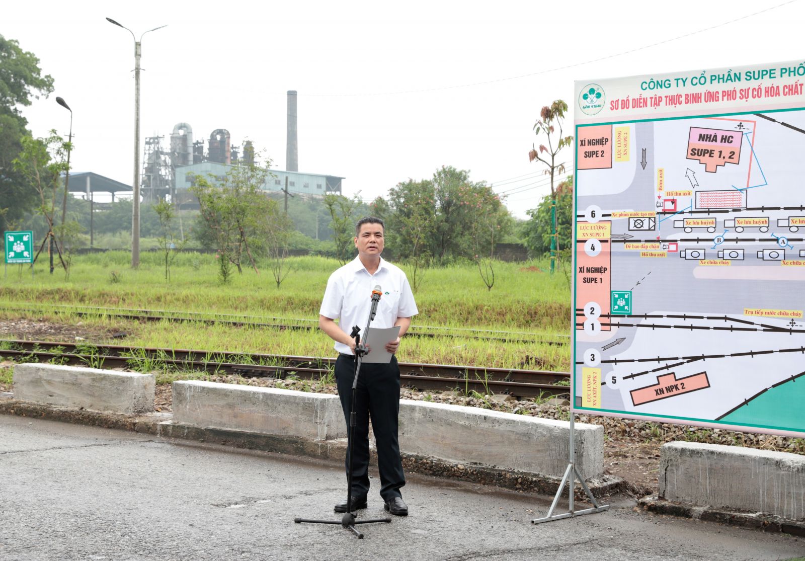 Phát biểu chỉ đạo sau buổi diễn tập, đồng chí Đặng Việt Phương, Phó Giám đốc Sở Công Thương cùng đại diện Lãnh đạo Sở Tài nguyên Môi trường tỉnh Phú Thọ, Bộ Chỉ huy quân sự tỉnh Phú Thọ, phòng Cảnh sát Phòng cháy chữa cháy và Cứu nạn cứu hộ tỉnh Phú Thọ đã đánh giá cao và biểu dương Công ty có sự chuẩn bị chu đáo về mọi mặt để buổi diễn tập được thực hiện bài bản, chính xác, nhanh gọn, đảm bảo an toàn tuyệt đối về người và tài sản, đáp ứng các mục tiêu, yêu cầu đề ra. Các đồng chí Lãnh đạo cấp trên mong muốn trong thời gian tới, Công ty tiếp tục phát huy công tác luyện tập, diễn tập từ tổ,ca tới cấp Công ty; đồng thời phát huy tinh thần bốn tại chỗ (Lực lượng tại chỗ, phương tiện tại chỗ, chỉ huy tại chỗ, hậu cần tại chỗ) để luôn chủ động trong việc ứng phó, xử lý từ tình huống nhỏ, không để xảy ra sự cố lớn về hoá chất và môi trường.