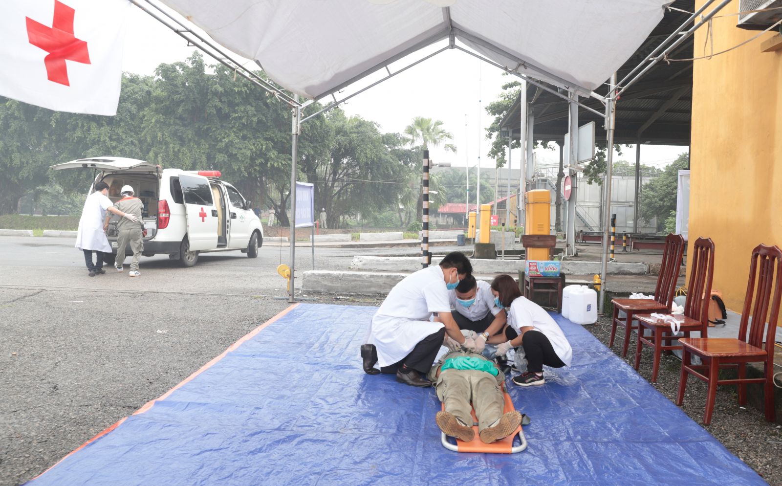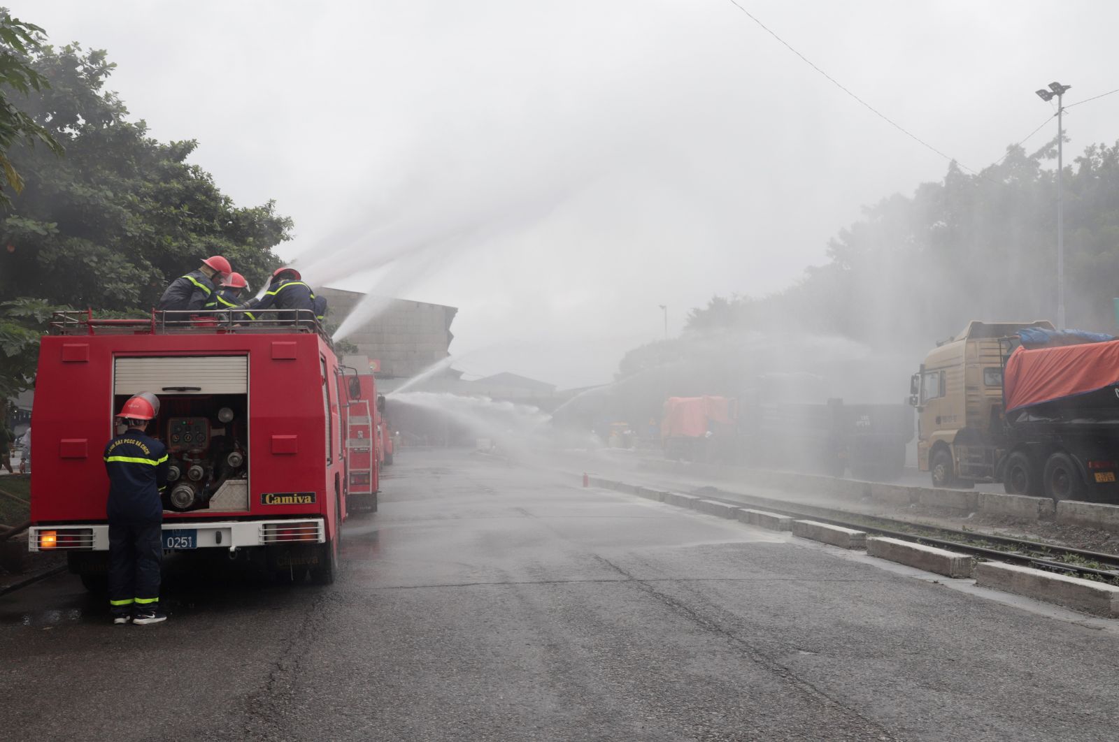 Phát biểu khai mạc tại buổi Diễn tập, đồng chí Phạm Thanh Tùng, Bí thư Đảng uỷ, Tổng Giám đốc Công ty, Trưởng Ban chỉ đạo cuộc diễn tập cho biết: Là doanh nghiệp sản xuất phân bón và hoá chất có quy mô lớn, Công ty cổ phần Supe Phốt phát và Hoá chất Lâm Thao luôn ý thức được những nguy cơ tiềm ẩn có thể xảy ra, nhất là với kho chứa lưu huỳnh tại Công ty là một vị trí trọng điểm có nguy cơ xảy ra cháy, gây sự cố hóa chất, sự cố môi trường. Do đó, những năm qua, bên cạnh việc chú trọng đẩy mạnh phát triển sản xuất kinh doanh, chăm lo đời sống người lao động, Công ty luôn cố gắng, nỗ lực đầu tư nhân lực, vật lực cho công tác an toàn hóa chất, bảo vệ môi trường như: Công ty đã xây dựng hệ thống cấp nước chữa cháy vách tường, hệ thống giám sát bằng camera, Đội Phòng cháy chữa cháy chuyên trách, bán chuyên trách được trang bị 02 xe chữa cháy và hóa chất để xử lý, ứng phó sự cố môi trường luôn sẵn sàng. Đặc biệt, Công ty thường xuyên tổ chức các cuộc diễn tập ứng phó sự cố hóa chất, ứng phó sự cố môi trường với các quy mô từ cấp tổ ca, đến cấp Công ty, tạo sự chủ động trong ứng phó, xử lý các tình huống khẩn cấp của lực lượng cơ sở. Do vậy, trong nhiều năm qua, Công ty không để xảy ra sự cố hóa chất, sự cố môi trường nào, hoạt động sản xuất kinh doanh được đảm bảo ổn định, hiệu quả. Nhân dịp này, đồng chí Phạm Thanh Tùng cảm ơn sự quan tâm, chỉ đạo của các đồng chí Lãnh đạo cấp trên, sự hỗ trợ của các lực lượng các chiến sỹ tham gia diễn tập của Phòng Cảnh sát phòng cháy chữa cháy và cứu nạn cứu hộ Công an tỉnh Phú Thọ, Các Y, Bác sỹ của Trung tâm Y tế huyện Lâm Thao.