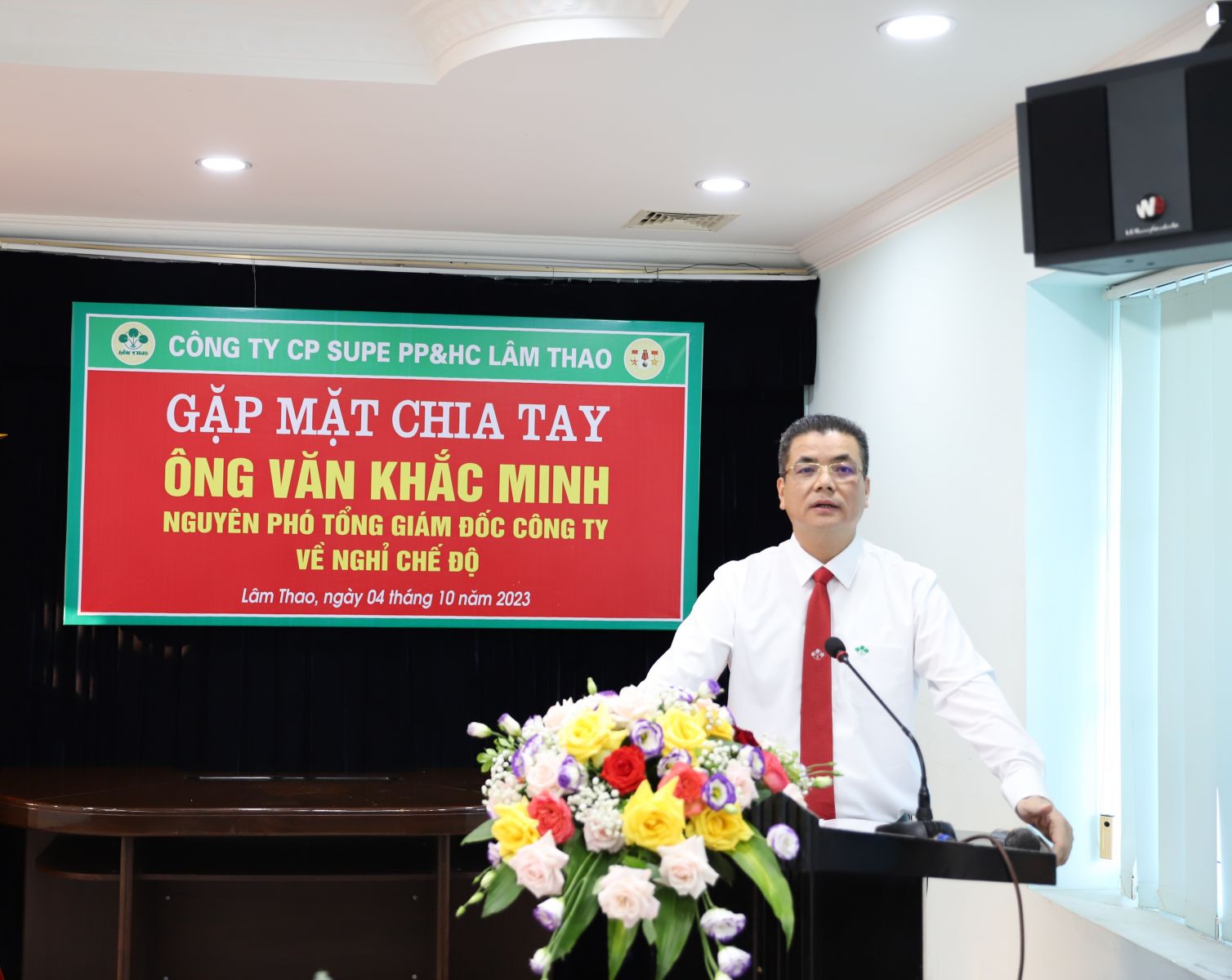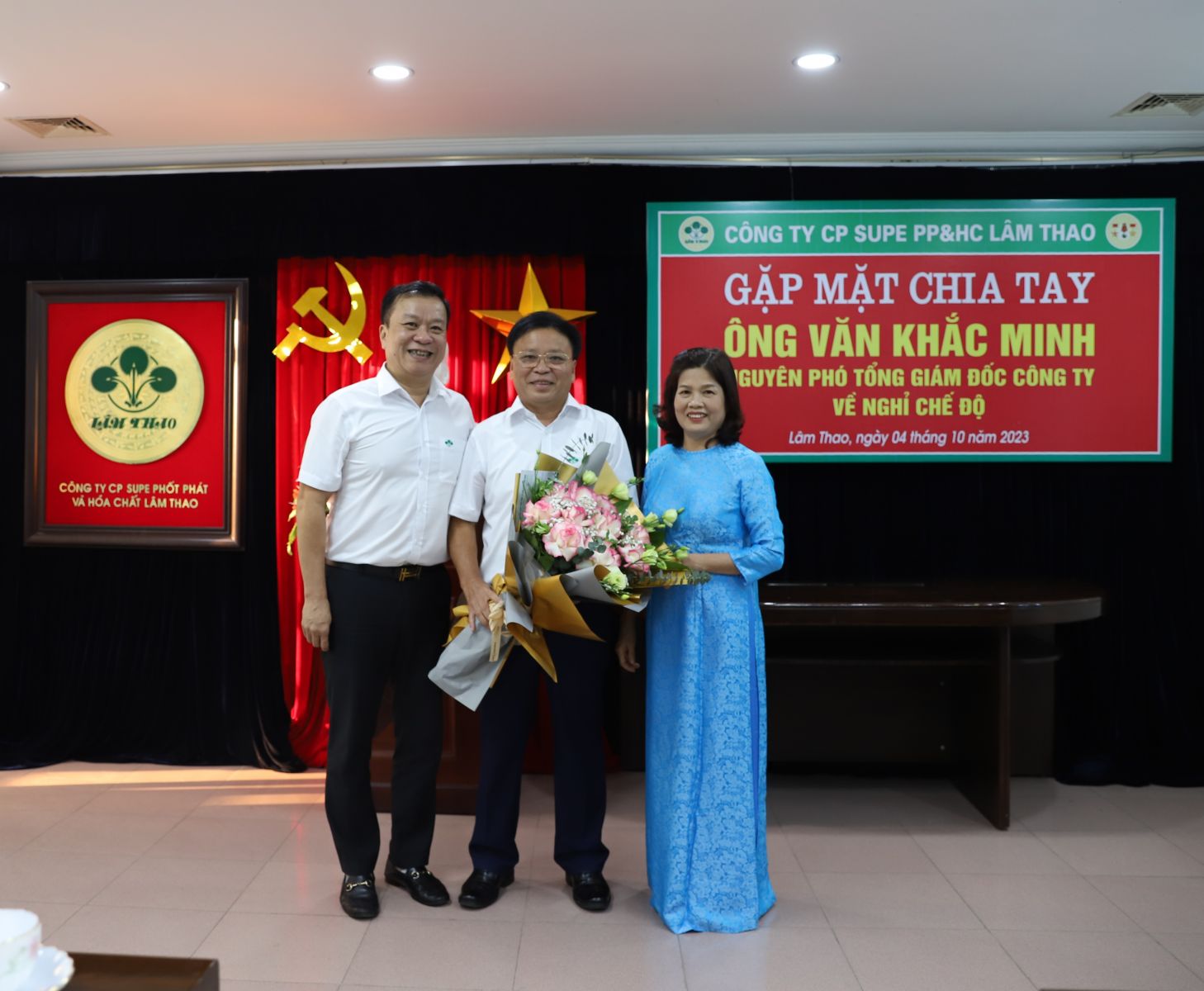 Chiều ngày 04 tháng 10 năm 2023, Công ty cổ phần Supe Phốt phát và Hoá chất Lâm Thao tổ chức gặp mặt, chia tay đồng chí Văn Khắc Minh, nguyên Phó Tổng Giám đốc Công ty về nghỉ hưu theo chế độ của Nhà nước.