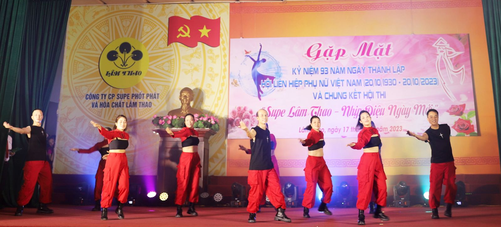 Thiết thực chào mừng kỷ niệm 93 năm Ngày thành lập Hội Liên hiệp phụ nữ Việt Nam (20/10/1930 – 20/10/2023), tối ngày 17 tháng 10 năm 2023, tại Hội trường khu công nhân Supe, Công ty cổ phần Supe Phốt phát và Hoá chất Lâm Thao long trọng tổ chức buổi Gặp mặt và Chung kết Hội thi “Supe Lâm Thao, nhịp điệu ngày mới”.