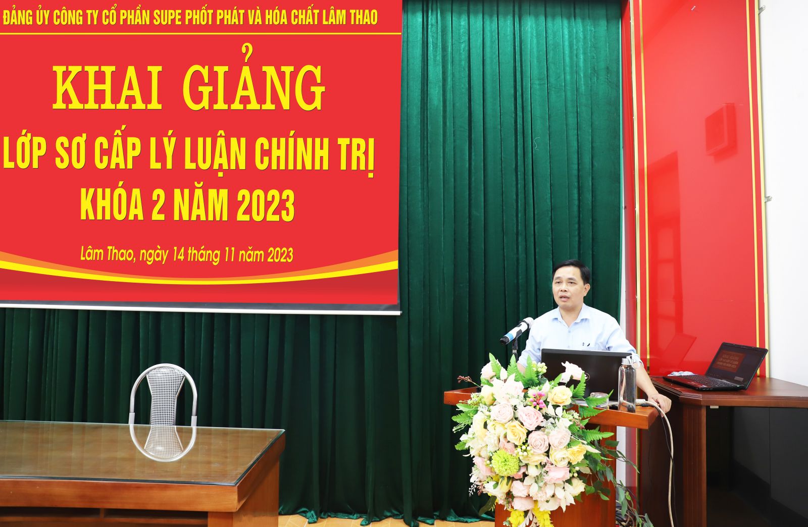 Sáng ngày 14 tháng 11 năm 2023, Đảng uỷ Công ty cổ phần Supe Phốt phát và Hoá chất Lâm Thao phối hợp với Trung tâm Chính trị huyện Lâm Thao tổ chức Lễ khai giảng lớp Sơ cấp lý luận chính trị khoá 2, năm 2023 cho gần 70 học viên là các cán bộ, đảng viên của Đảng uỷ Công ty.