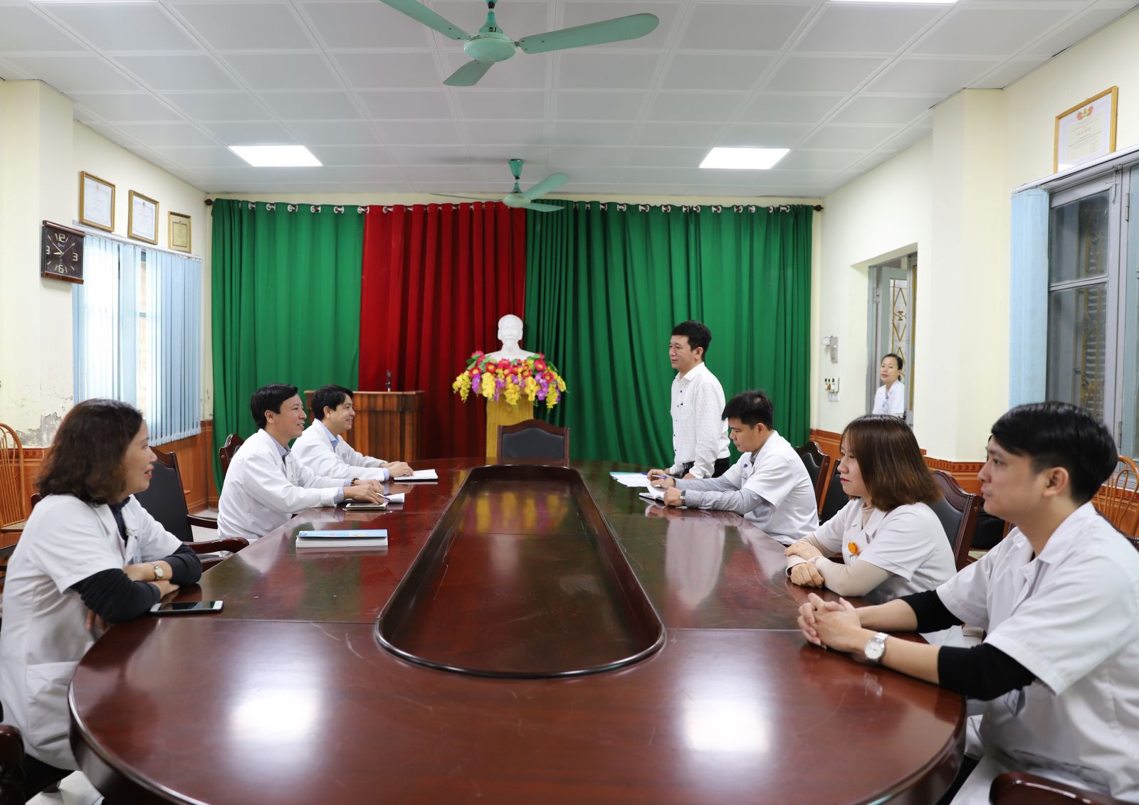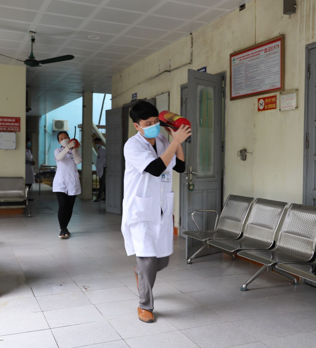 Đến dự và chỉ đạo diễn tập, có đồng chí Triệu Đăng Định, Phó Trưởng Phòng Kỹ thuật - phụ trách An toàn bức xạ Công ty; đồng chí Phùng Duy Hưng, cán bộ Phòng Kỹ thuật Công ty; Cán bộ Phòng Bảo vệ Quân sự - PCCC Công ty. Về phía Phòng Y tế có đồng chí Triệu Quốc Hưng, Trưởng Phòng và đội PCCC bán chuyên của Phòng Y tế.