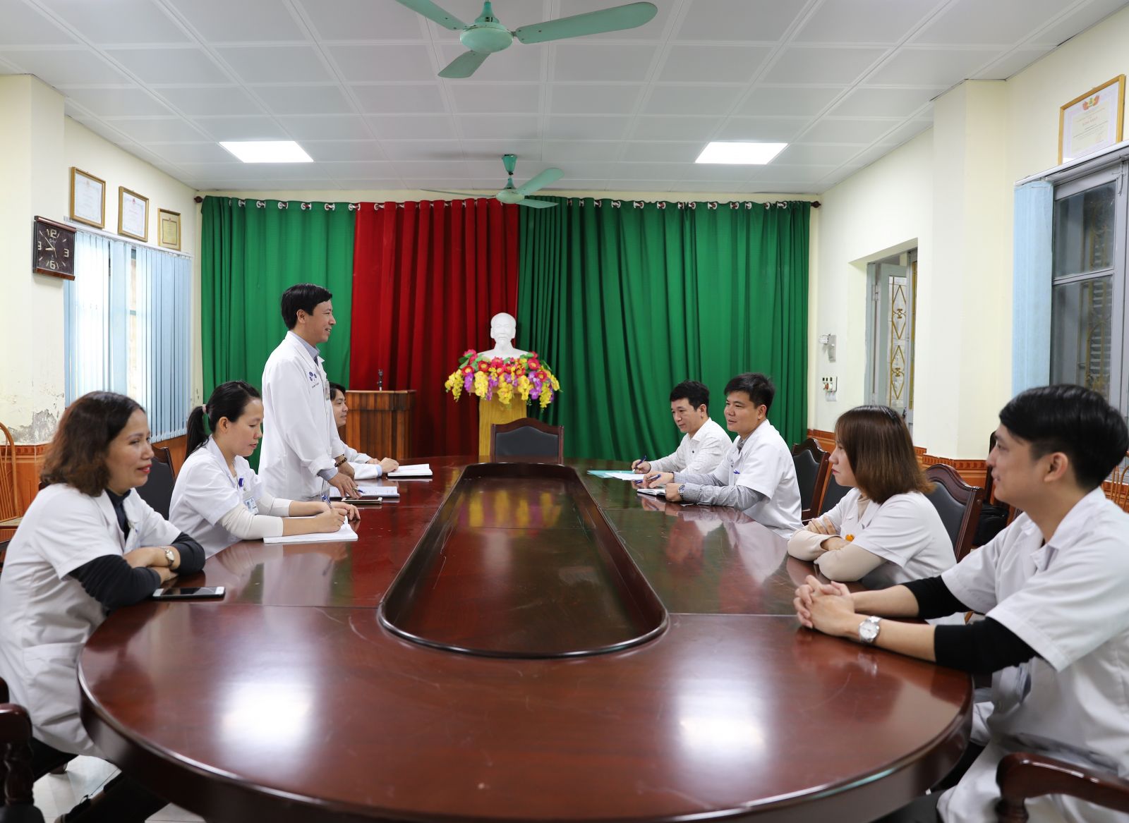 Kết thúc diễn tập, Ban chỉ đạo, Lãnh đạo Phòng Y tế và các lực lượng tham gia diễn tập tổ chức rút kinh nghiệm, đánh giá ưu điểm và tồn tại cần chấn chỉnh trong từng khâu chỉ đạo, thực hành các bước trong kế hoạch diễn tập đã được phê duyệt.