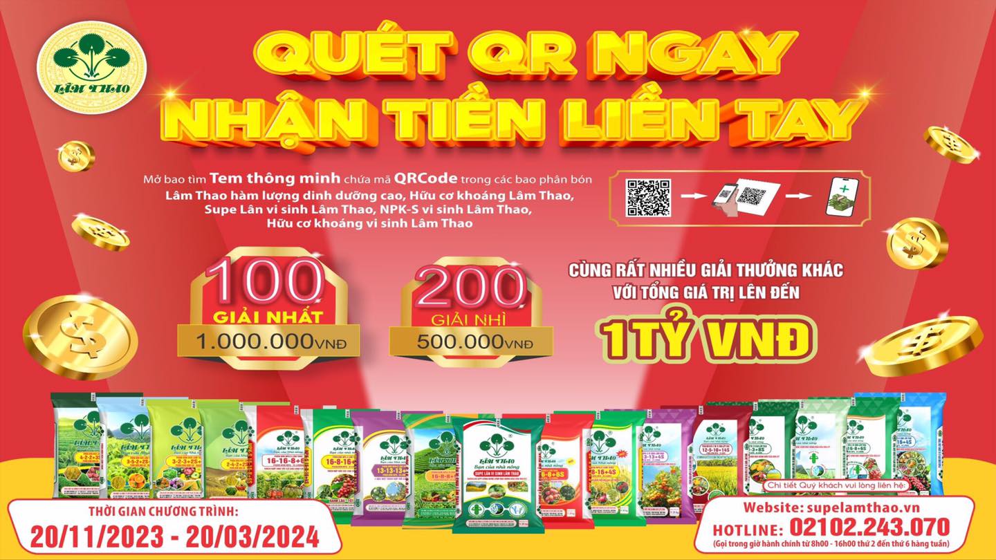 Còn rất nhiều giải thưởng đang chờ đón bạn. Hãy nhanh tay tìm ngay Tem( có gắn mã QR code) được gắn bên trong mỗi bao phân bón Lâm thao hàm lượng dinh dưỡng cao, Hữu cơ khoáng Lâm Thao, Supe Lân vi sinh Lâm Thao, NPK-S vi sinh Lâm Thao, Hữu cơ khoáng vi sinh Lâm Thao và làm theo các bước hướng dẫn để đăng ký và nhận kết quả trúng thưởng.