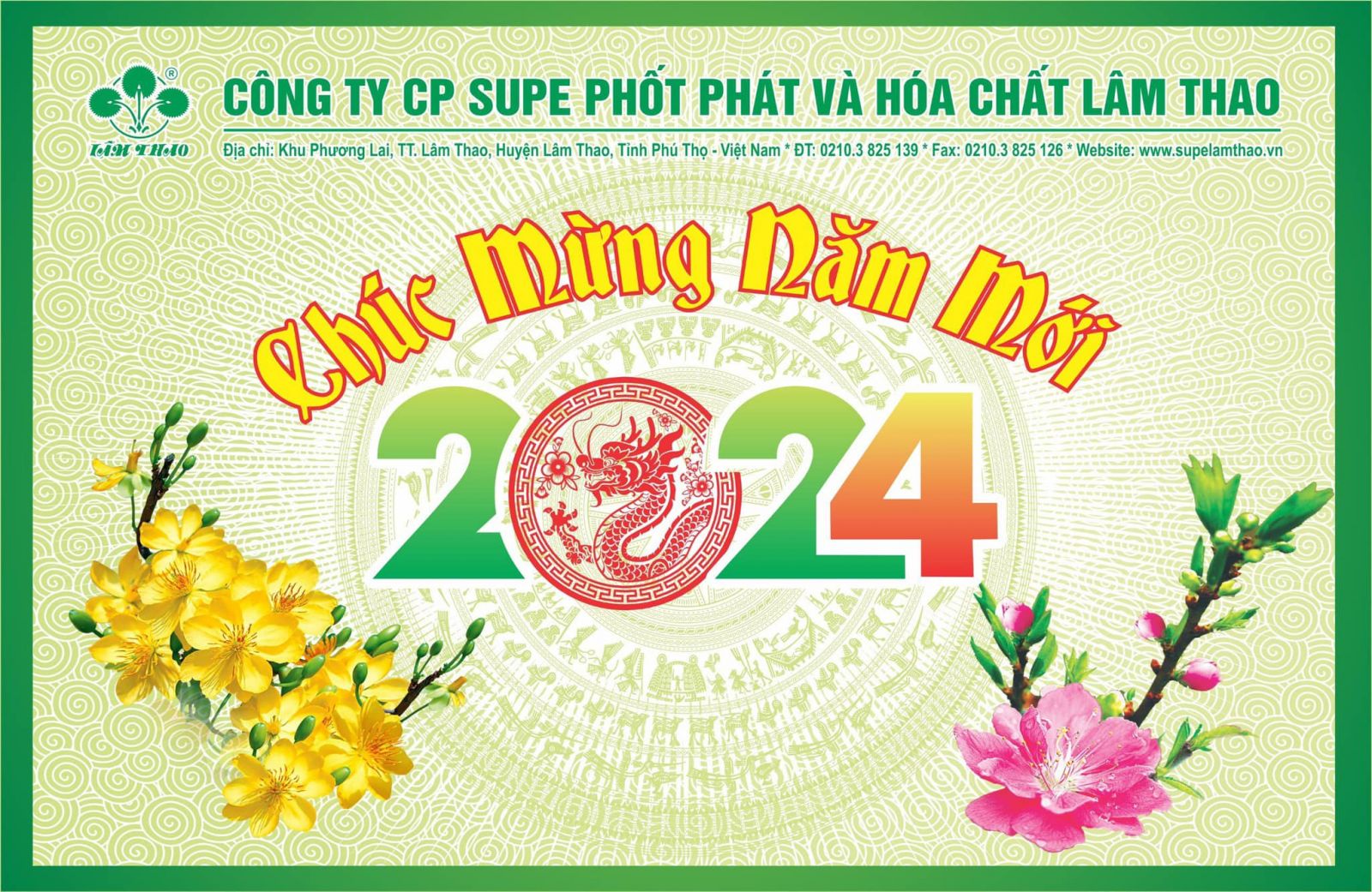 Công ty cổ phần Supe Phốt phát và Hoá chất Lâm Thao kính chúc toàn thể Cán bộ, Người lao động đã, đang làm việc tại Công ty cùng Quý Khách hàng, Đối tác và Nhân dân trên địa bàn năm mới luôn dồi dào sức khỏe, hạnh phúc, thành công và an khang thịnh vượng.