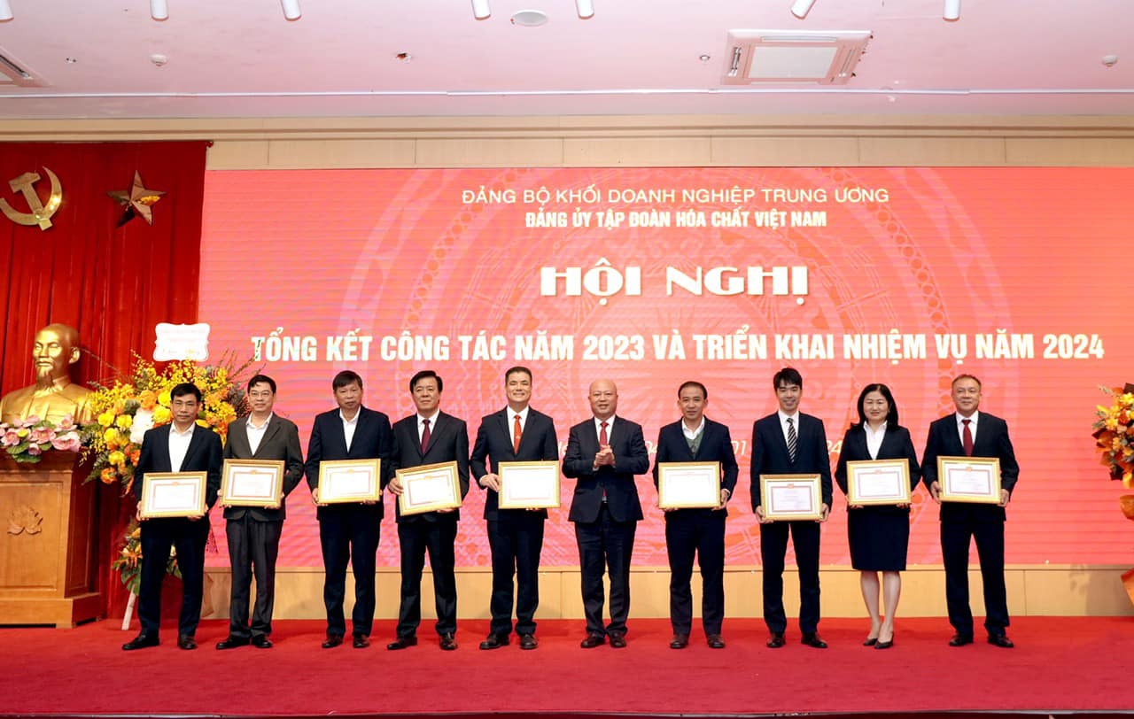 Để ghi nhận những kết quả Công ty đạt được năm 2023, trong Hội nghị tổng kết công tác Đảng bộ Tập đoàn Hoá chất Việt Nam năm 2023, Đảng bộ Công ty vinh dự được Đảng bộ Tập đoàn Hoá chất Việt Nam tặng Giấy khen vì đã hoàn thành xuất sắc nhiệm vụ năm 2023. Trong Hội nghị tổng kết công tác năm 2023 của Tập đoàn Hoá chất Việt Nam, Công ty vinh dự được Uỷ ban Quản lý vốn Nhà nước tại Doanh nghiệp tặng Cờ “Đơn vị xuất sắc, dẫn đầu phong trào thi đua năm 2023”, đồng thời được Tập đoàn Hoá chất Việt Nam tặng danh hiệu “Đơn vị xuất sắc trong phong trào thi đua năm 2023”. Thay mặt Đảng bộ và Công ty, đồng chí Phạm Thanh Tùng, Bí thư Đảng uỷ, Tổng Giám đốc đón nhận các phần thưởng trên; Tại Hội nghị Tổng kết công tác năm 2023 của Công đoàn Công nghiệp Hoá chất Việt Nam, Công đoàn Công ty vinh dự được Tổng Liên đoàn Lao động Việt Nam tặng Cờ “Đơn vị xuất sắc trong phong trào công nhân viên chức lao động và hoạt động Công đoàn năm 2023”, thay mặt Lãnh đạo Công đoàn Công ty, đồng chí Lê Văn Hoằng vinh dự đón nhận phần thưởng trên. Bên cạnh đó, nhiều cá nhân là cán bộ, đảng viên, người lao động Công ty được nhận bằng khen của Đảng bộ Tập đoàn Hoá chất Việt Nam và Công đoàn Công nghiệp Hoá chất Việt Nam, của Cục an ninh kinh tế vì có thành tích xuất sắc trong năm 2023.