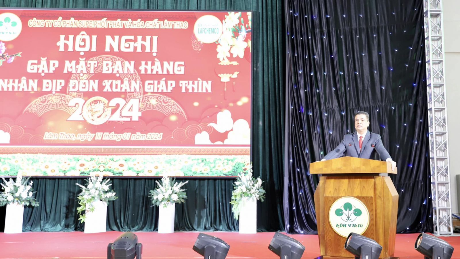 Trong không khí vui mừng, phấn khởi với những thành tích đạt được trong sản xuất kinh doanh năm 2023 của tập thể cán bộ, người lao động Công ty cổ phần Supe Phốt phát và Hoá chất Lâm Thao. Nhằm tri ân hệ thống phân phối và các đơn vị vận tải sản phẩm phân bón Lâm Thao, chiều ngày 11 tháng 01 năm 2023, Công ty cổ phần Supe Phốt phát và Hóa chất Lâm Thao long trọng tổ chức Hội nghị tổng kết công tác tiêu thụ sản phẩm năm 2023, triển khai nhiệm vụ năm 2024, gặp mặt bạn hàng tại Nhà Đa năng Công ty.