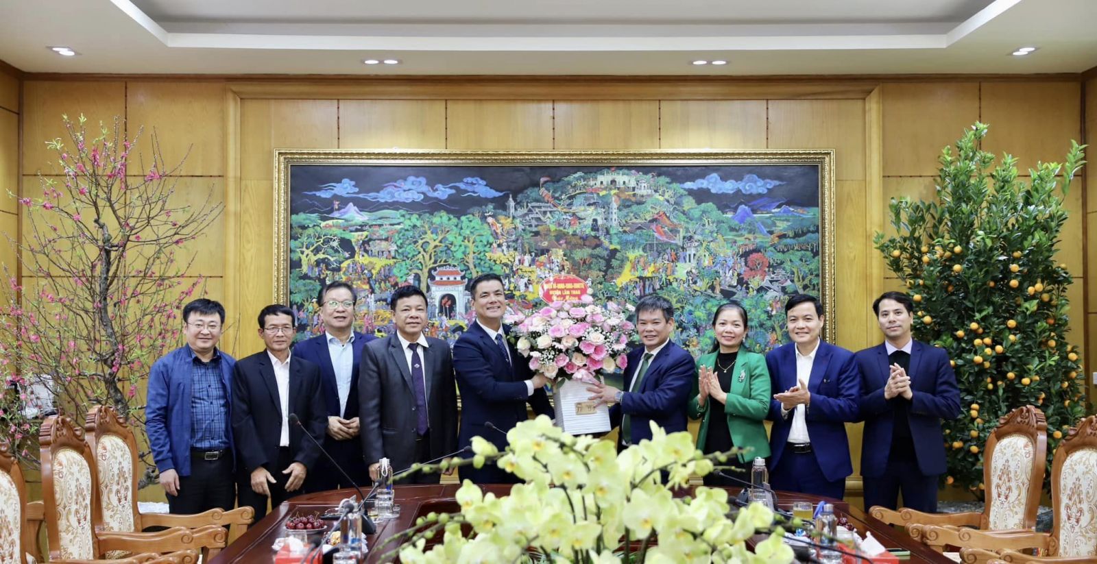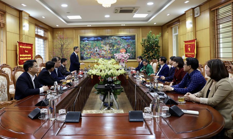 Các đồng chí đại diện Lãnh đạo các xã: Thạch Sơn, Xuân Lũng (huyện Lâm Thao) tới thăm, chúc Tết Công ty.