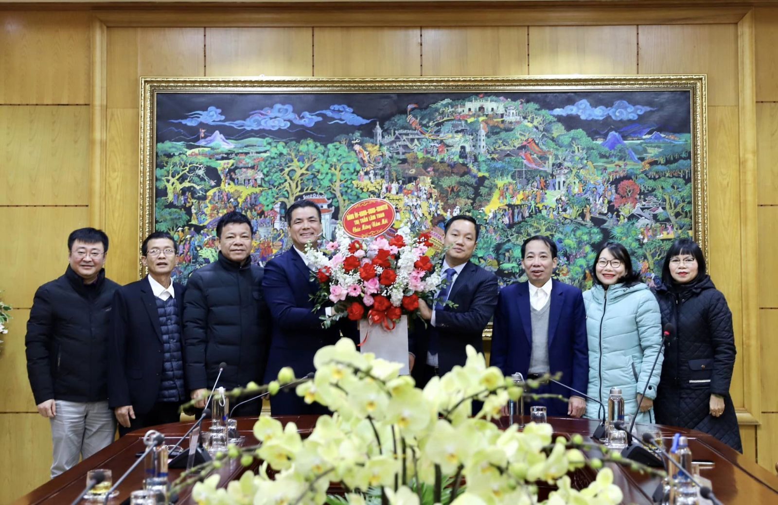 Các đồng chí đại diện Lãnh đạo xã Vạn Xuân (huyện Tam Nông, tỉnh Phú Thọ) tới thăm, chúc Tết Công ty.