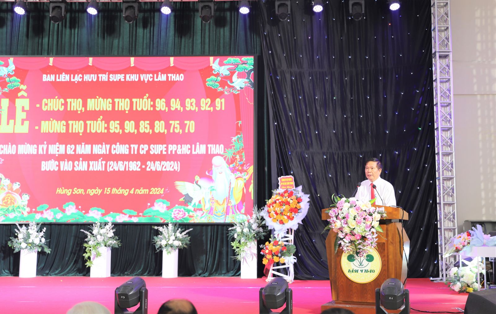 Nhân dịp chào mừng kỷ niệm 62 năm ngày Công ty cổ phần Supe Phốt phát và Hoá chất Lâm Thao bước vào sản xuất (24/6/1962 – 24/6/2024), sáng ngày 15 tháng 4 năm 2024, tại Hội trường Khu công nhân Supe, Hội hưu trí Supe khu vực Lâm Thao tổ chức gặp mặt và chúc thọ, mừng thọ cho các hội viên trong Hội.
