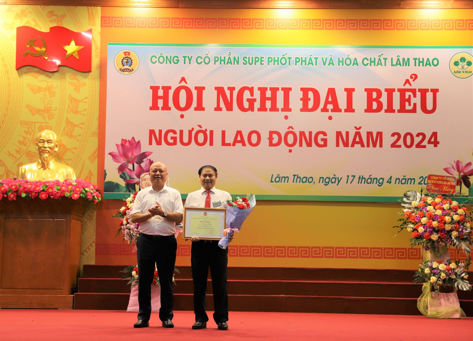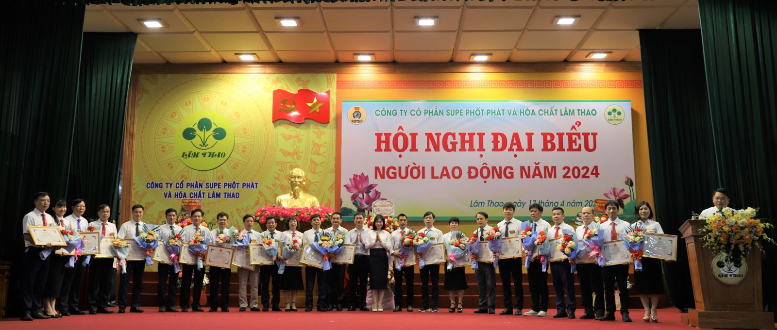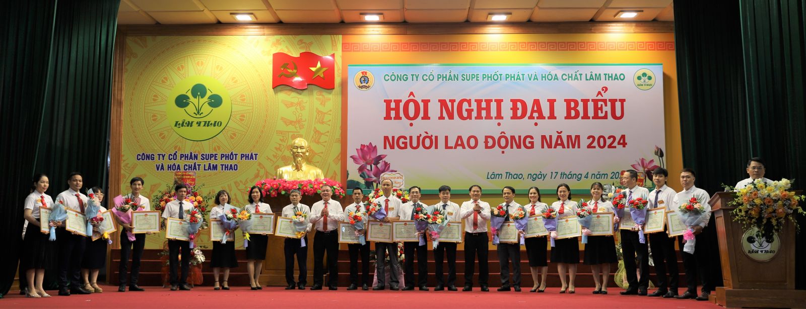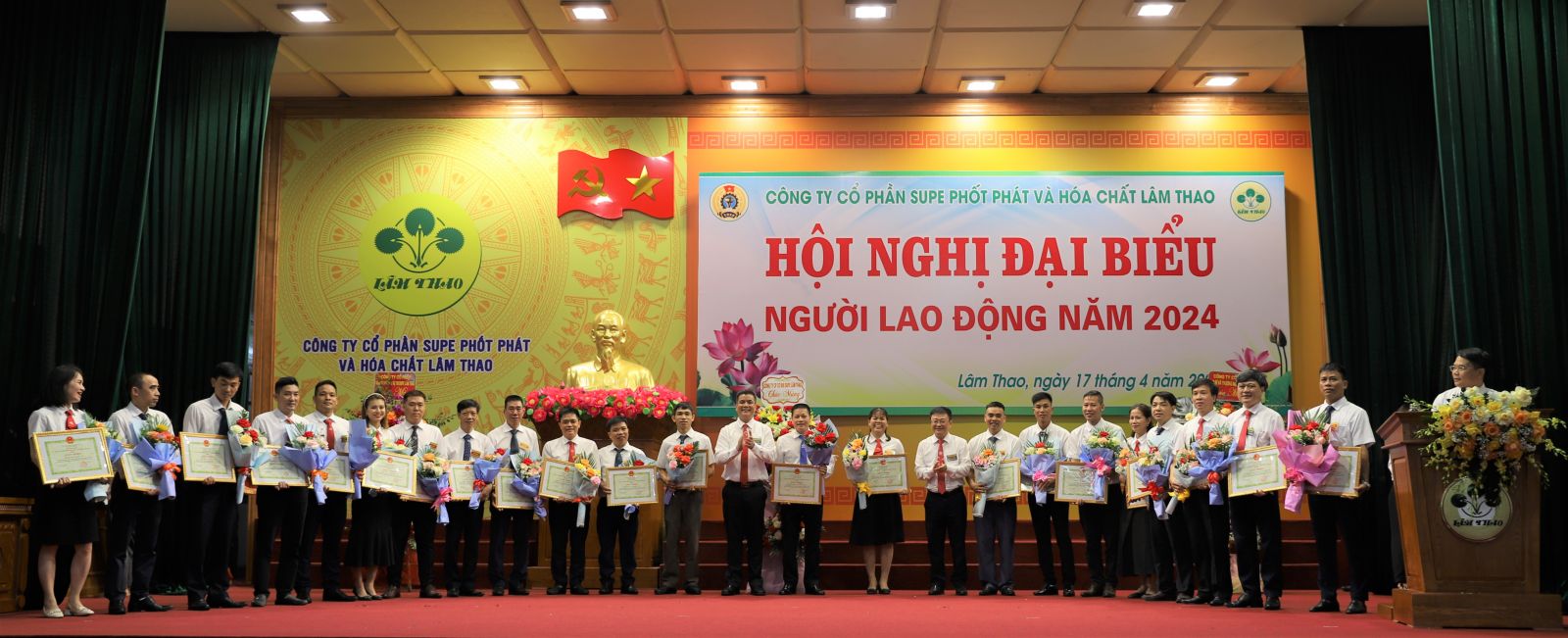 Sáng ngày 17 tháng 4 năm 2024, tại Hội trường Khu công nhân Supe, Công ty cổ phần Supe Phốt phát và Hoá chất Lâm Thao đã tổ chức thành công Hội nghị Đại biểu Người lao động năm 2024. Đây là sự kiện nhằm phát huy quyền dân chủ trực tiếp của người lao động, tạo điều kiện để người lao động được tham gia ý kiến vào những vấn đề có liên quan đến quyền lợi, nghĩa vụ và trách nhiệm tại Công ty.