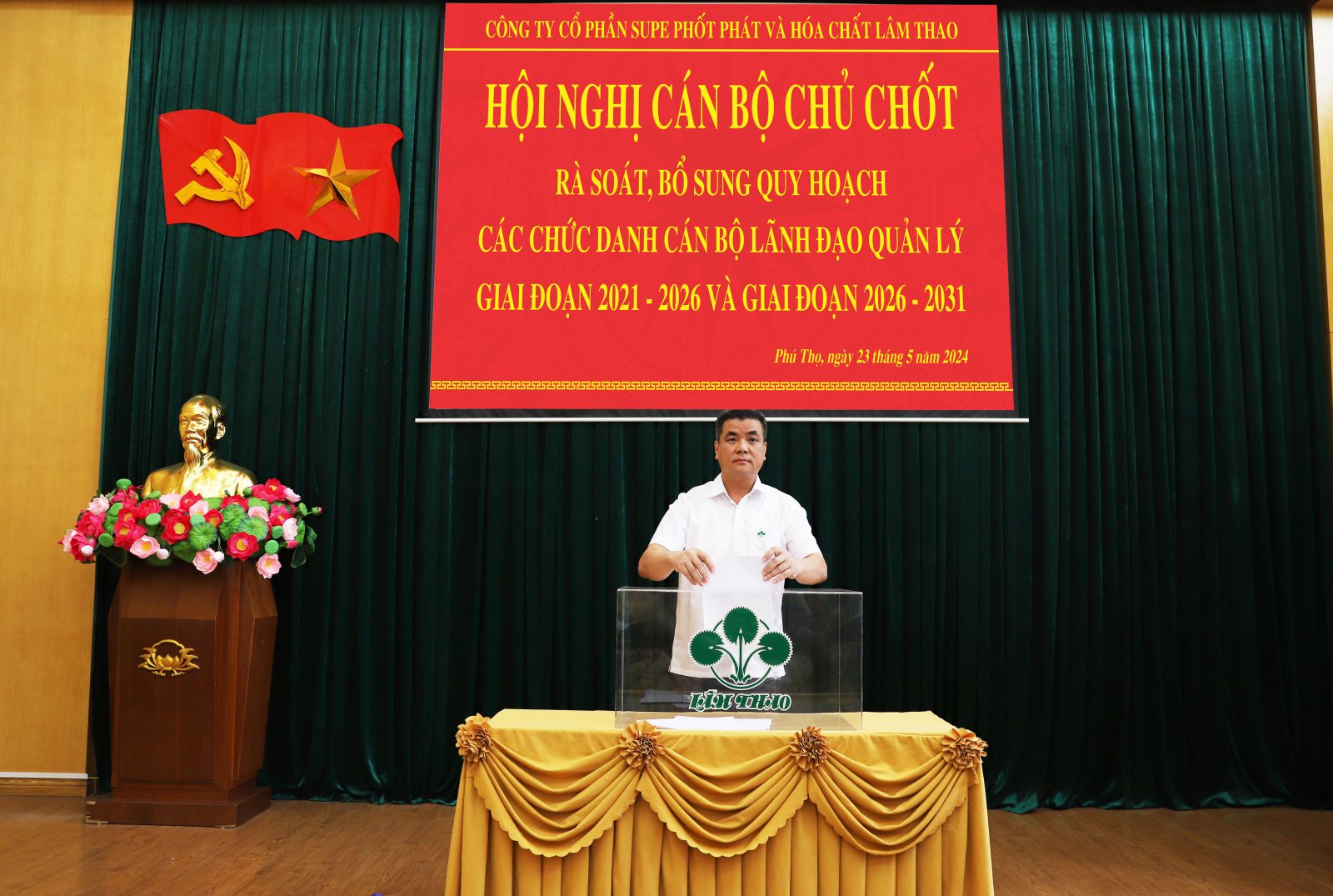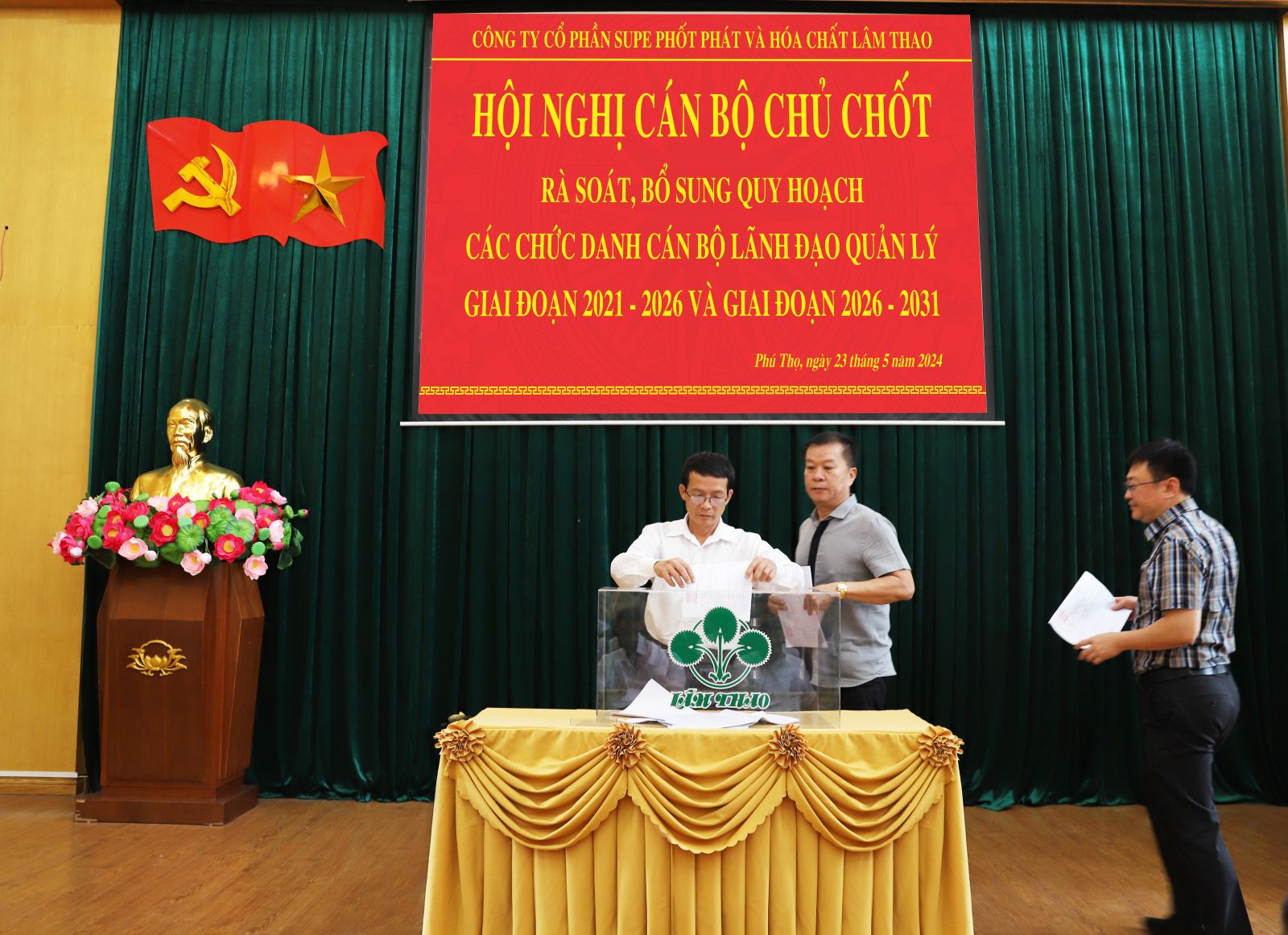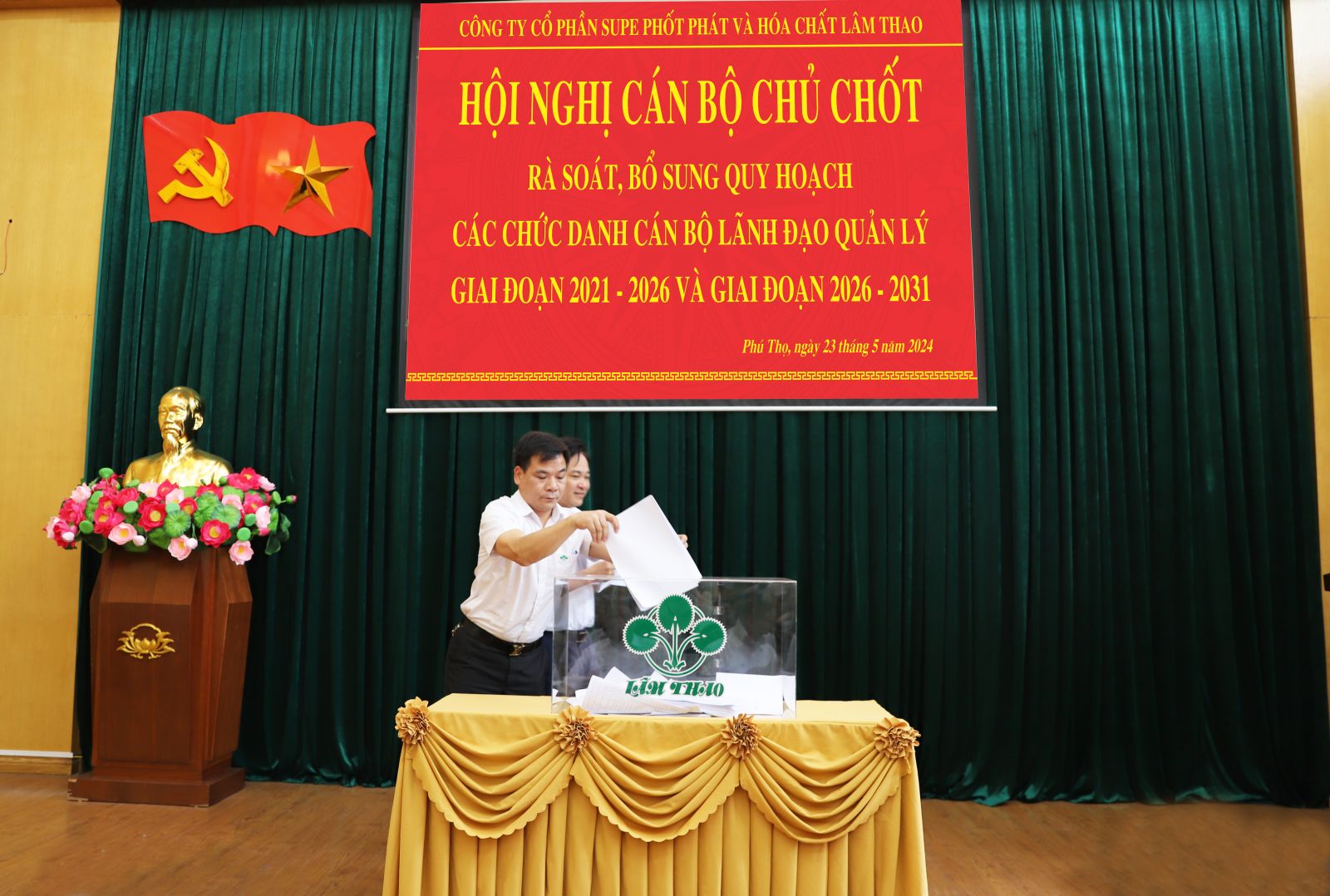 Thực hiện các văn bản chỉ đạo của Nhà nước và Tập đoàn Hóa chất Việt Nam về quy hoạch cán bộ lãnh đạo, quản lý Công ty cổ phần Supe Phốt phát và Hóa chất Lâm Thao, giai đoạn 2021 – 2026 và giai đoạn 2026-2031, ngày 23/5/2024, dưới sự chủ trì của đồng chí Nguyễn Quốc Anh, Chủ tịch Hội đồng Quản trị Công ty và đồng chí Phạm Thanh Tùng, Bí thư Đảng ủy, Tổng Giám đốc đã triệu tập, tổ chức Hội nghị rà soát, bổ sung quy hoạch cán bộ lãnh đạo, quản lý Công ty, giai đoạn 2021 - 2026 và giai đoạn 2026 – 2031.