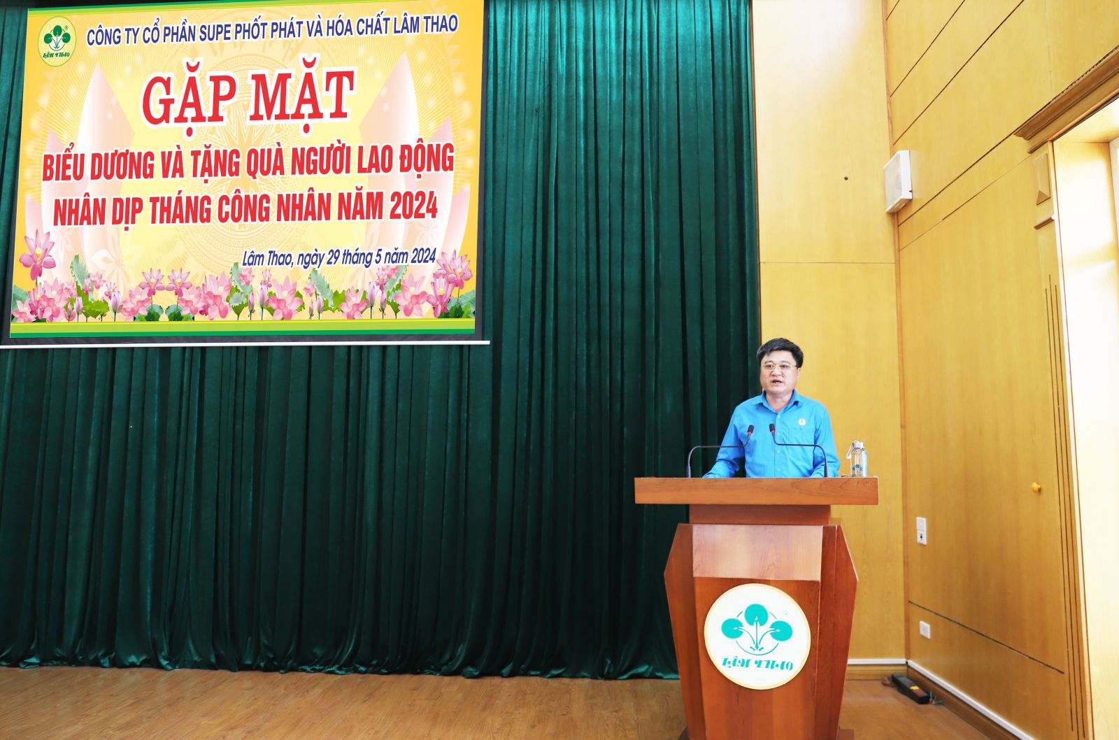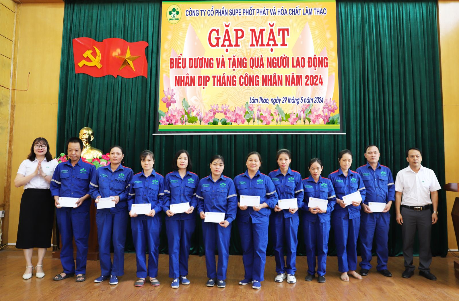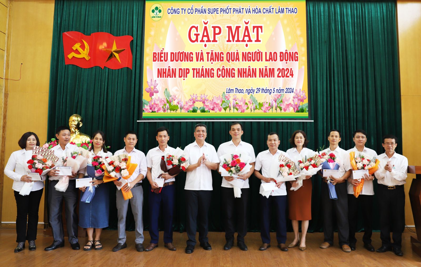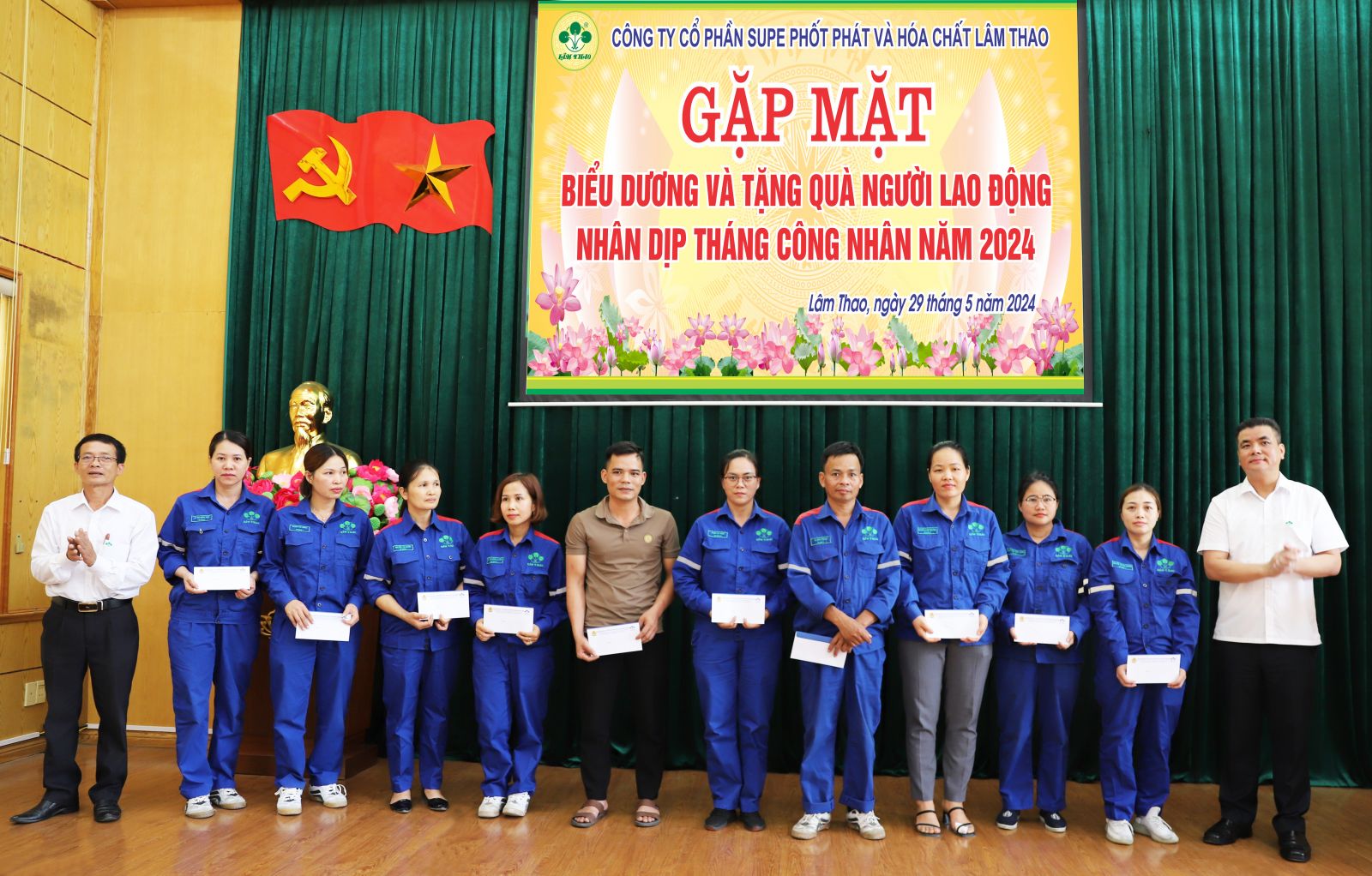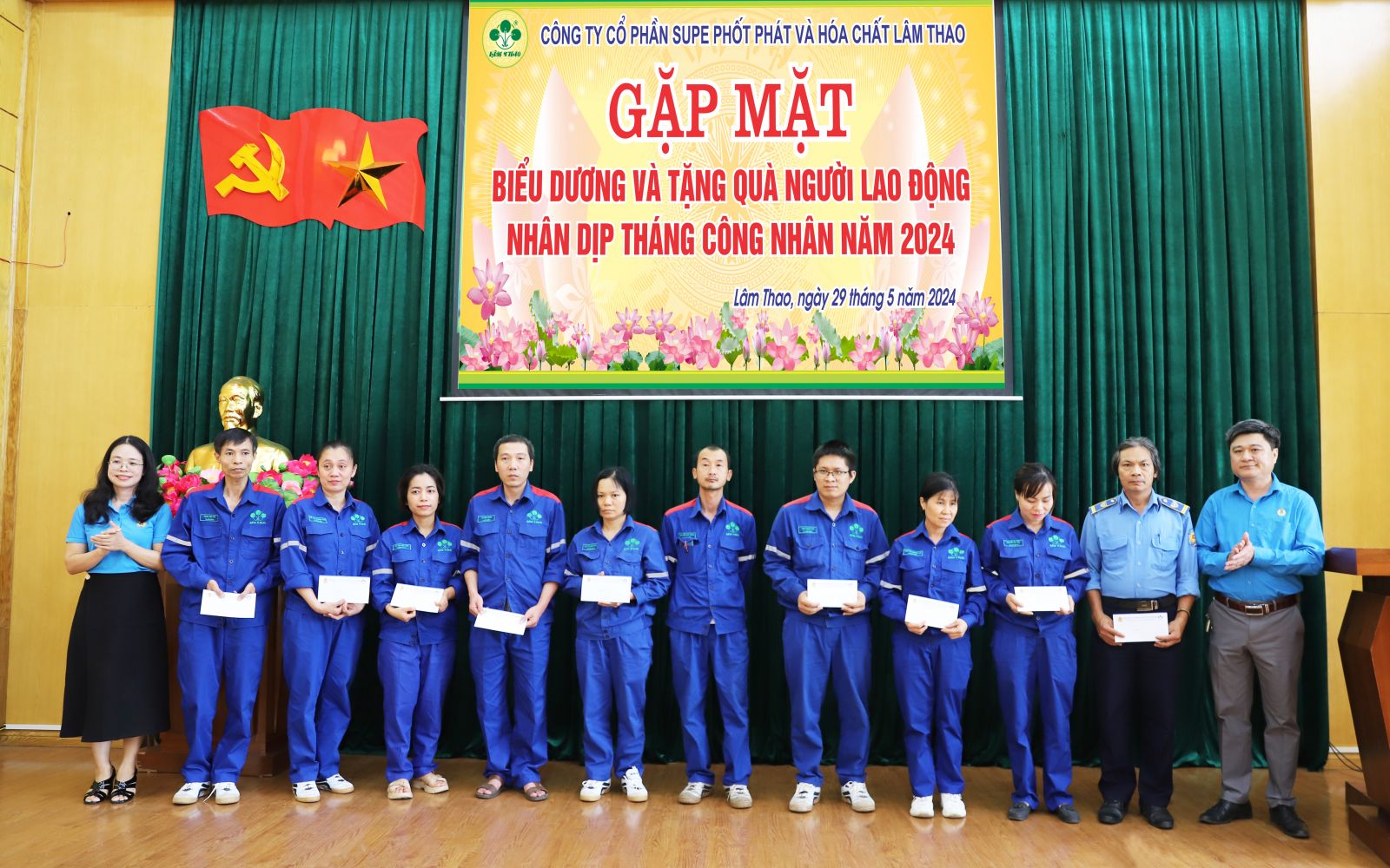 Nhân dịp kỷ niệm Tháng Công nhân năm 2024, hướng tới chào mừng kỷ niệm 62 năm Ngày Công ty cổ phần Supe Phốt phát và Hoá chất Lâm Thao bước vào sản xuất (24/6/1962-24/6/2024), chiều ngày 29 tháng 5 năm 2024, Công đoàn Công ty tổ chức gặp mặt biểu dương và tặng quà Người lao động.