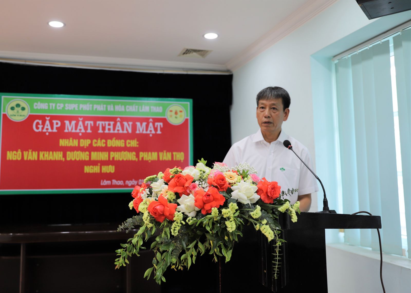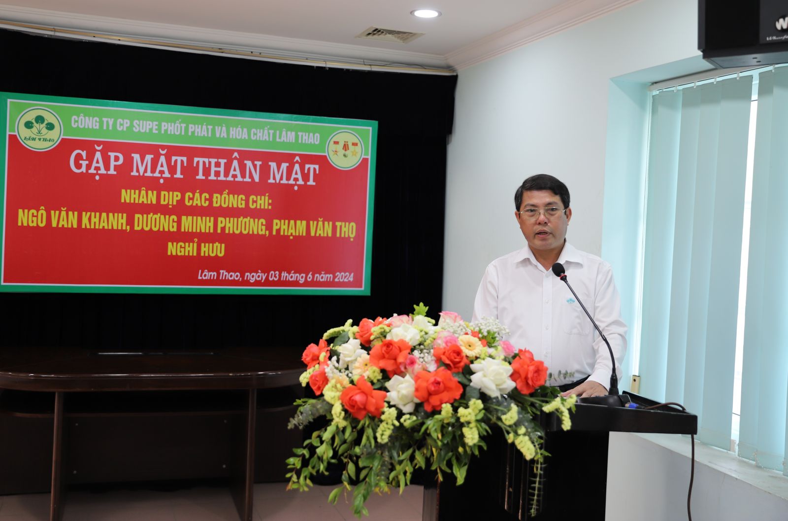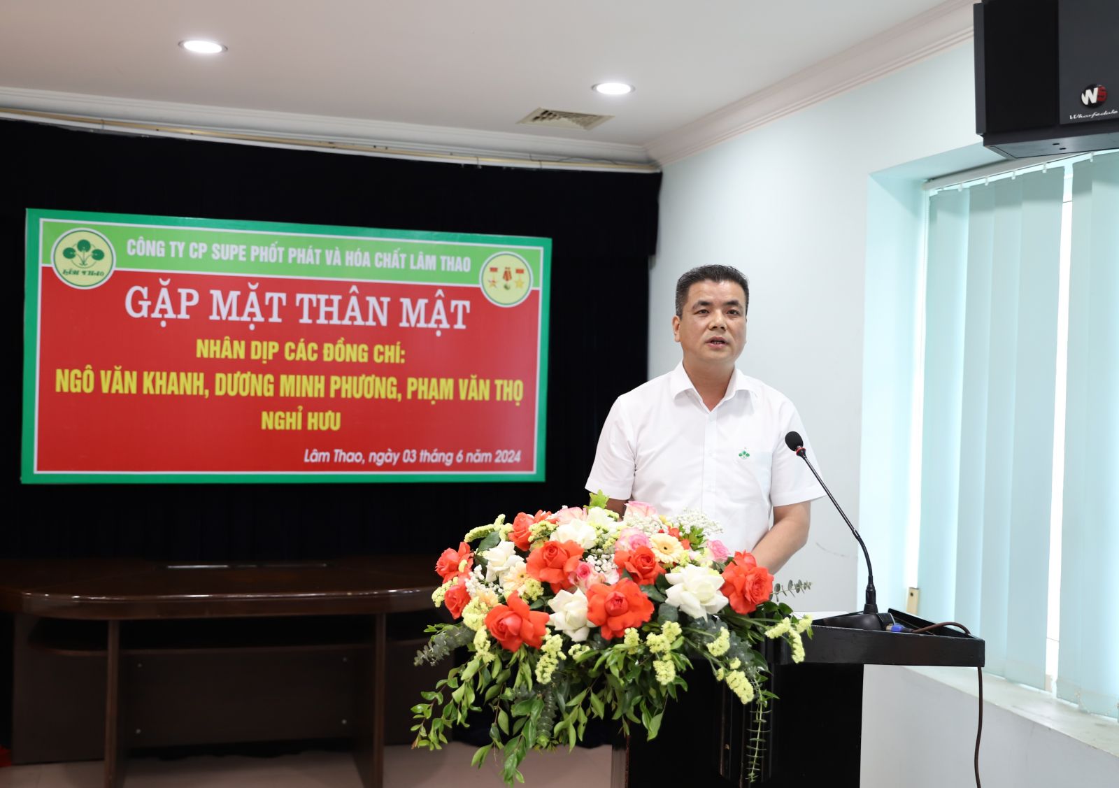 Chiều ngày 03 tháng 6 năm 2024, Công ty cổ phần Supe Phốt phát và Hoá chất Lâm Thao tổ chức gặp mặt, chia tay các đồng chí: Ngô Văn Khanh, nguyên Phó Giám đốc Xí nghiệp NPK2; Dương Minh Phương, nguyên Chánh Văn phòng Đảng uỷ Công ty; Phạm Văn Thọ, nguyên Giám đốc Xí nghiệp Supe 1 về nghỉ hưu theo chế độ của Nhà nước.