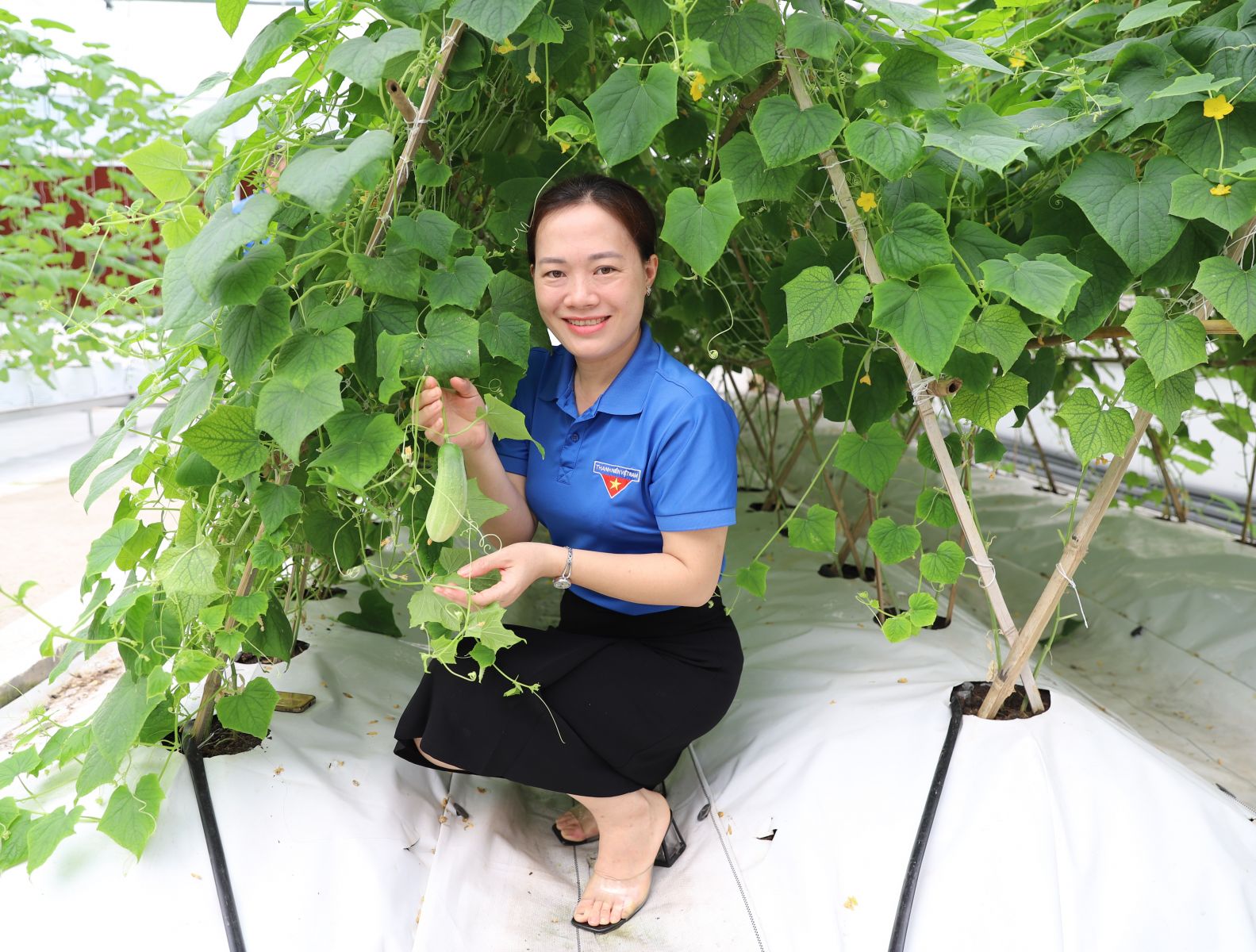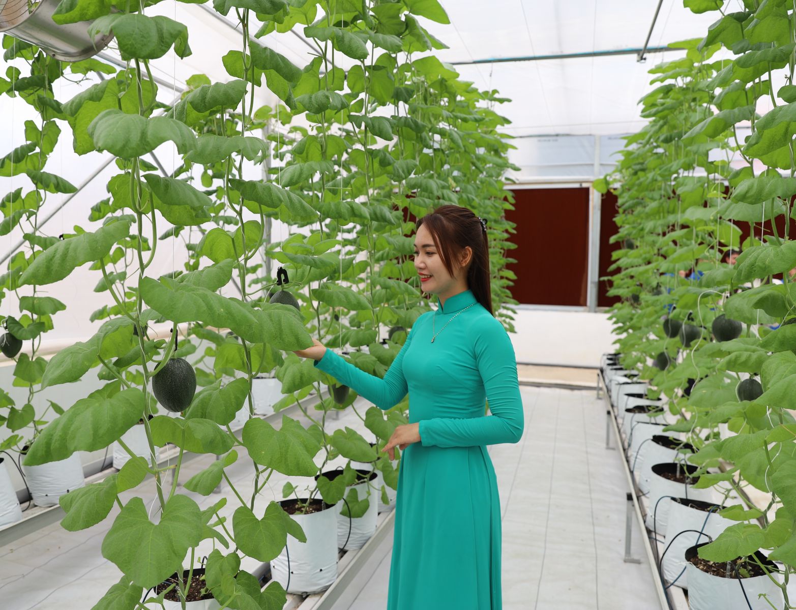 Kỹ sư Nông nghiệp Công ty-Nguyễn Thị Hương Quỳnh hàng ngày luôn chăm sóc cây trồng tại Vườn thực nghiệm.