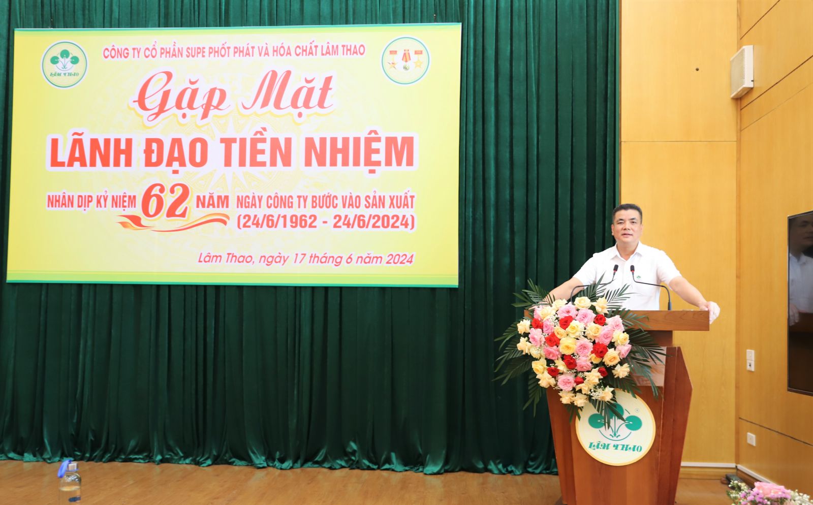 Không khí vui mừng, phấn khởi và tự hào về những thành quả của tập thể cán bộ, người lao động Công ty đạt được trong giai đoạn hiện nay là cảm xúc chủ đạo, xuyên suốt trong buổi gặp mặt các đồng chí nguyên là Lãnh đạo Công ty cổ phần Supe Phốt phát và Hoá chất Lâm Thao qua các thời kỳ, diễn ra vào chiều ngày 17 tháng 6 năm 2024, nhân dịp kỷ niệm 62 năm ngày Công ty bước vào sản xuất (24/6/1962-24/6/2024).