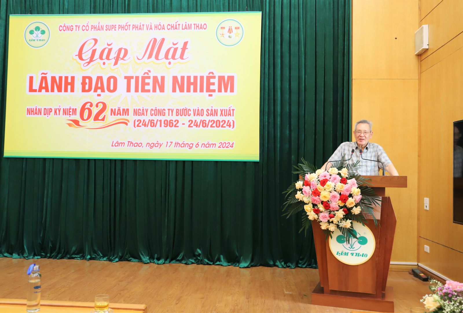 Thay mặt Ban Lãnh đạo Công ty, đồng chí Tổng Giám đốc Phạm Thanh Tùng báo cáo về kết quả sản xuất kinh doanh và các hoạt động nổi bật của Công ty trong năm 2023, 6 tháng đầu năm 2024 và định hướng phát triển cả năm 2024, đồng chí nhấn mạnh: Mặc dù còn gặp nhiều khó khăn thách thức bởi tác động của tình hình kinh tế xã hội, song tập thể cán bộ người lao động Công ty luôn đoàn kết, nỗ lực đổi mới sáng tạo, đưa Công ty hoàn thành vượt mức nhiều chỉ tiêu kế hoạch đề ra; đời sống vật chất tinh thần người lao động được nâng cao rõ rệt; Công ty luôn đóng góp đầy đủ vào ngân sách Nhà nước và thực hiện tốt công tác an sinh xã hội, nhân đạo từ thiện. Nhân dịp này, đồng chí Tổng Giám đốc Công ty gửi lời tri ân những cống hiến, đóng góp quý báu của các đồng chí Lãnh đạo tiền nhiệm đối với sự phát triển Công ty; kính chúc các đồng chí cùng gia đình luôn dồi dào sức khỏe, hạnh phúc và tiếp tục là điểm tựa vững chắc cho Công ty trong thời gian tới.