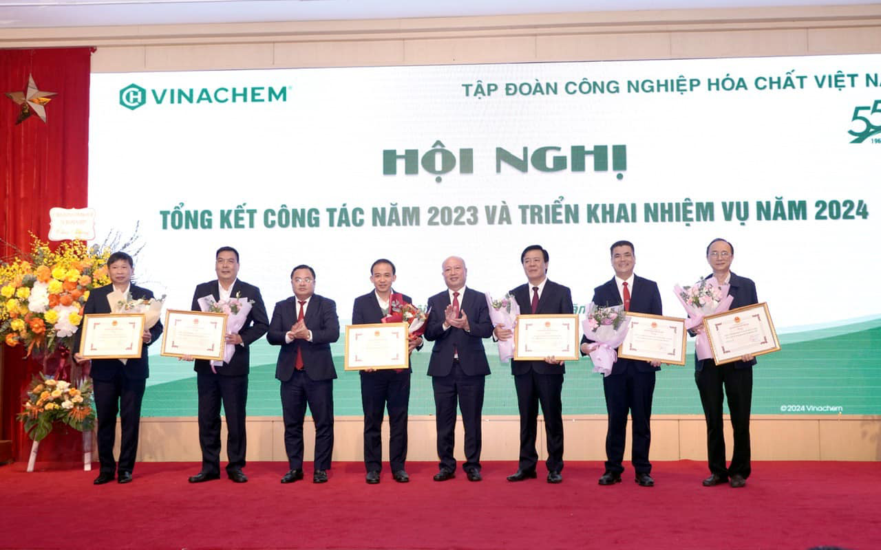 Đồng chí Phạm Thanh Tùng, Bí thư Đảng ủy, Tổng Giám đốc Công ty thay mặt Công ty vinh dự đón nhận danh hiệu “Đơn vị xuất sắc trong phong trào thi đua năm 2023” do Tập đoàn Hoá chất Việt Nam trao tặng.