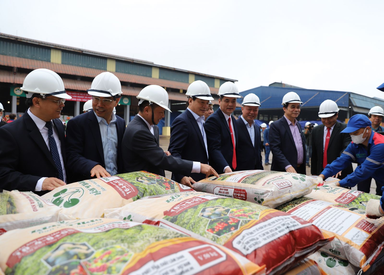 Đại diện lãnh đạo Bộ Công Thương, Tập đoàn Hóa chất Việt Nam, UBND tỉnh Phú Thọ và các nhà khoa học tại buổi ra mắt các sản phẩm phân bón chuyên dùng cho cây cà phê và nông nghiệp đô thị đầu năm 2024.