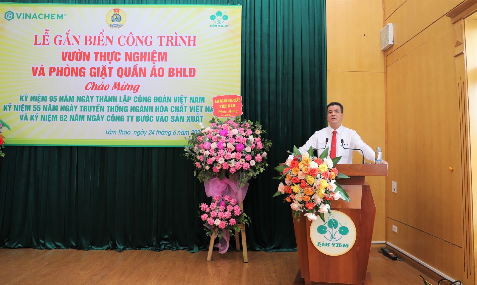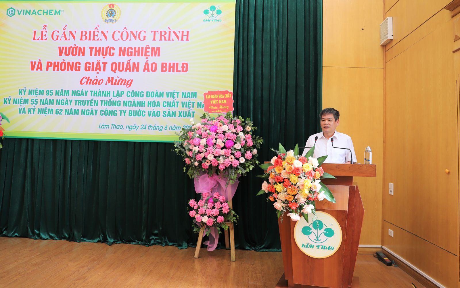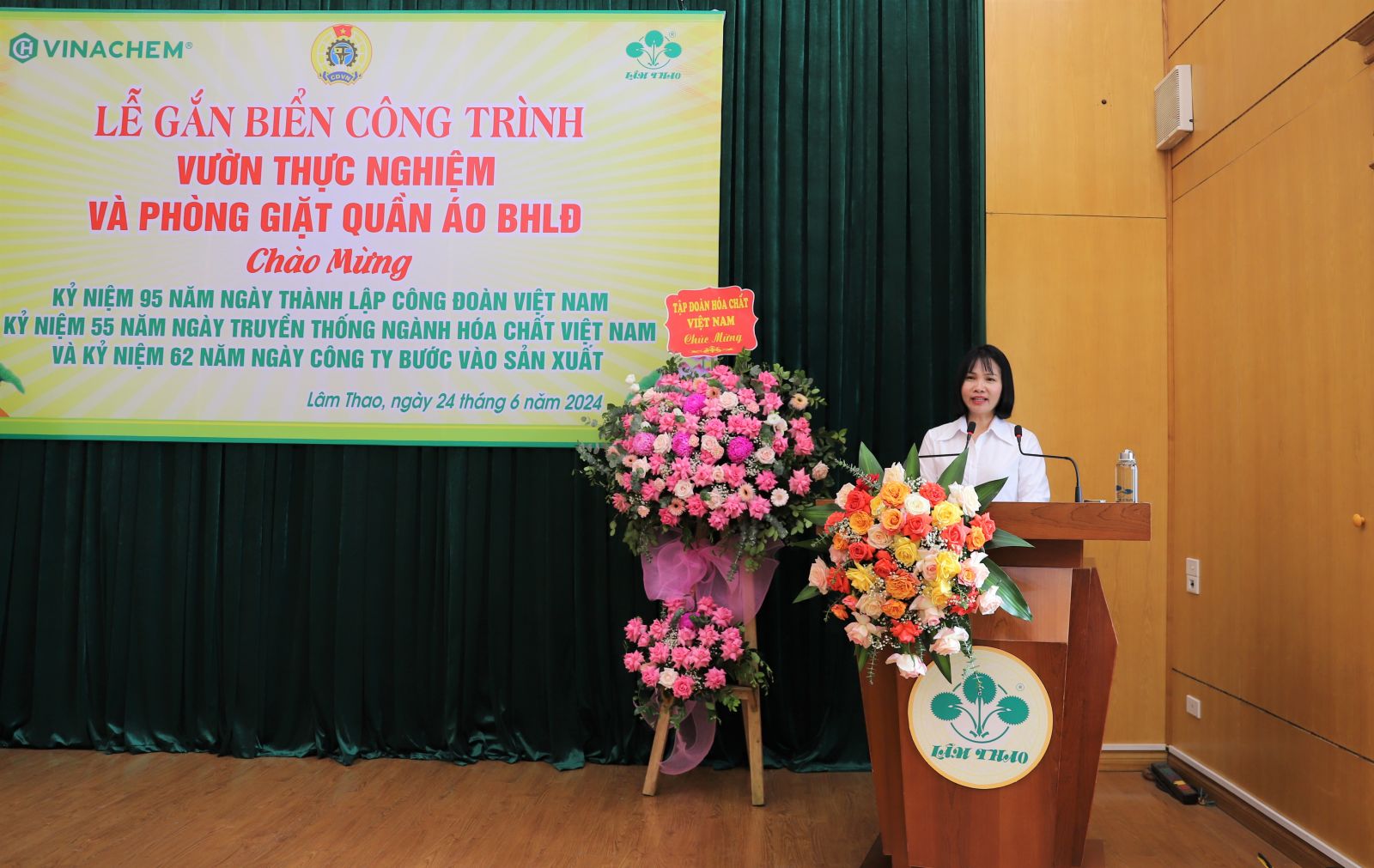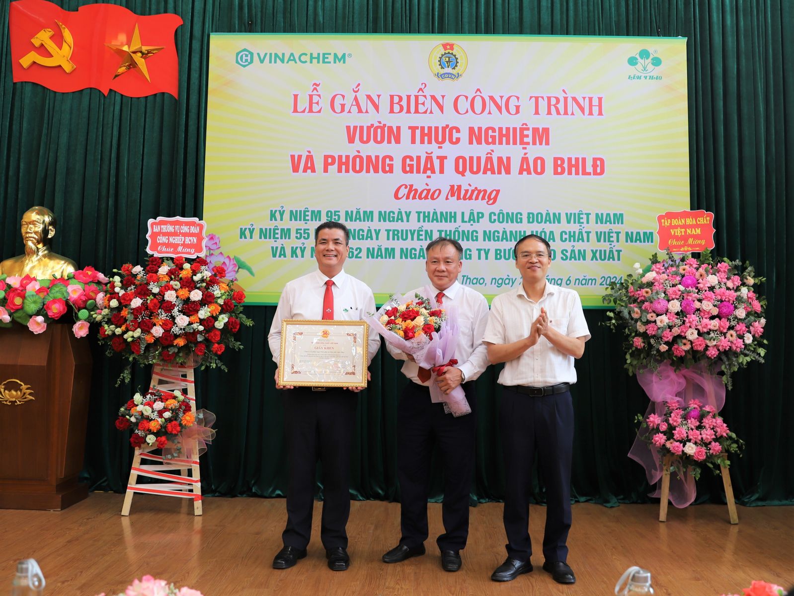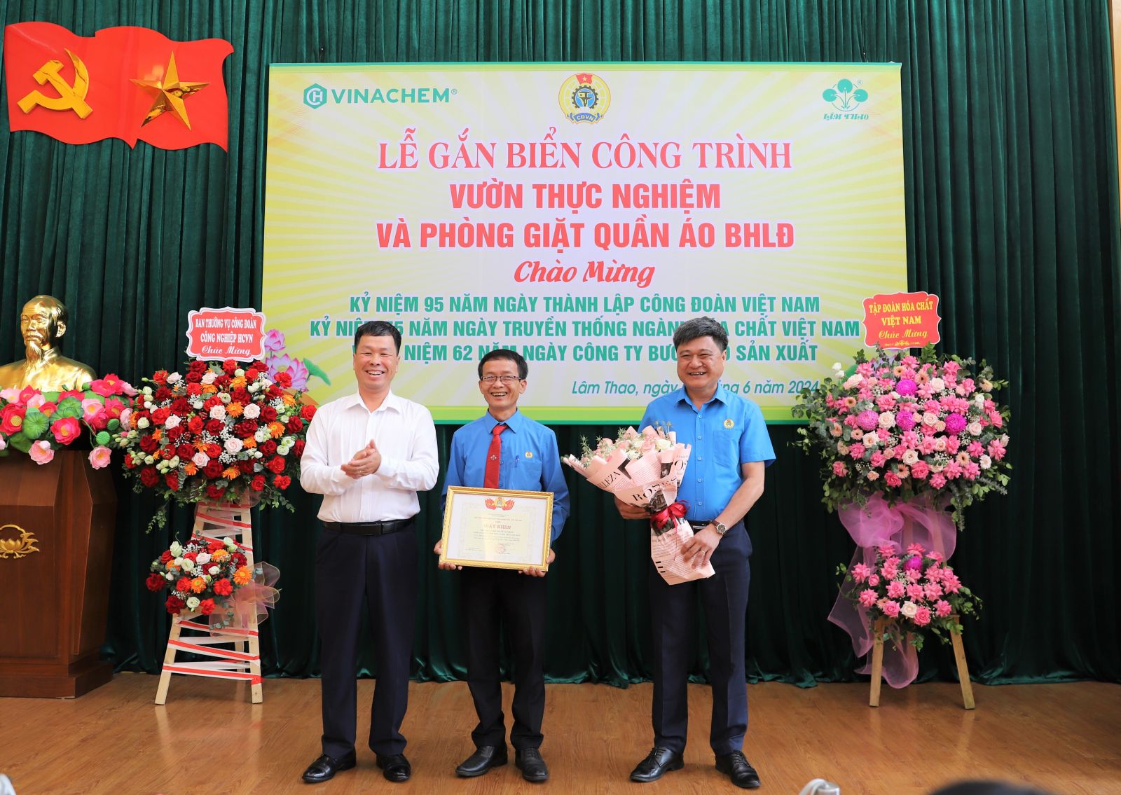 Thiết thực chào mừng kỷ niệm 95 năm ngày thành lập Công đoàn Việt Nam (28/7/1929-28/7/2024), Kỷ niệm 55 năm Ngày truyền thống ngành Hóa chất Việt Nam (19/8/1969 - 19/8/2024), Kỷ niệm 62 năm ngày Công ty bước vào sản xuất (24/6/1962-24/6/2024), sáng ngày 24 tháng 6 năm 2024, Công ty cổ phần Supe Phốt phát và Hoá chất Lâm Thao vinh dự được Tập đoàn Hoá chất Việt Nam và Công đoàn Công nghiệp Hoá chất Việt Nam lực chọn tổ chức gắn biển các công trình: Vườn thực nghiệm và Phòng giặt quần áo bảo hộ lao động cho người lao động.