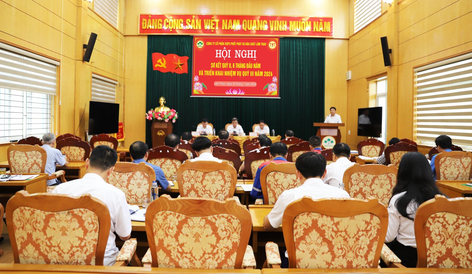 “Sản xuất kinh doanh tăng trưởng, doanh thu đạt kỳ vọng trong 6 tháng đầu năm 2024 của Công ty cổ phần Supe Phốt phát và Hoá chất Lâm Thao là tín hiệu đáng mừng, tạo tiền đề, nền tảng vững chắc để Công ty hoàn thành xuất sắc mục tiêu, kế hoạch đề ra trong năm 2024”, đó là chia sẻ của đồng chí Vũ Xuân Hồng, Phó Tổng Giám đốc Công ty trong Hội nghị sơ kết quý II, 6 tháng đầu năm và triển khai nhiệm vụ quý III năm 2024 diễn ra vào sáng ngày 02 tháng 7 năm 2024 tại Phòng họp lớn Công ty.