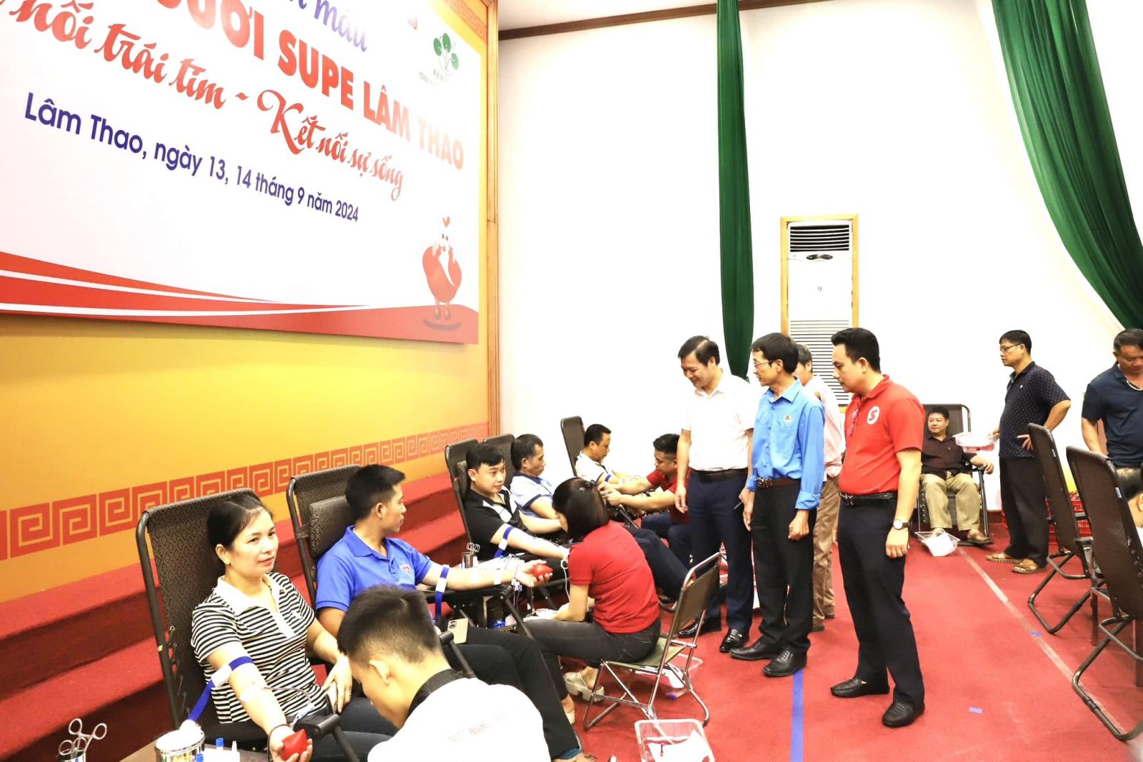 Đến dự chương trình có các đồng chí: Ngô Đức Sáu, Ủy viên BTV Huyện ủy, Phó Chủ tịch UBND huyện, Trưởng Ban vận động hiến máu tình nguyện huyện Lâm Thao; Lê Việt Dũng, Phó Chủ tịch Hội chữ thập đỏ huyện Lâm Thao. Về phía Công ty CP Supe Phốt phát và Hóa chất Lâm Thao có các đồng chí: Phạm Thanh Tùng, Bí thư Đảng uỷ, Tổng Giám đốc, đồng thời tham gia hiến máu tình nguyện; Lê Văn Hoằng, Chủ tịch Công đoàn Công ty và các đồng chí đại diện Lãnh đạo các tổ chức đoàn thể trong Công ty.
