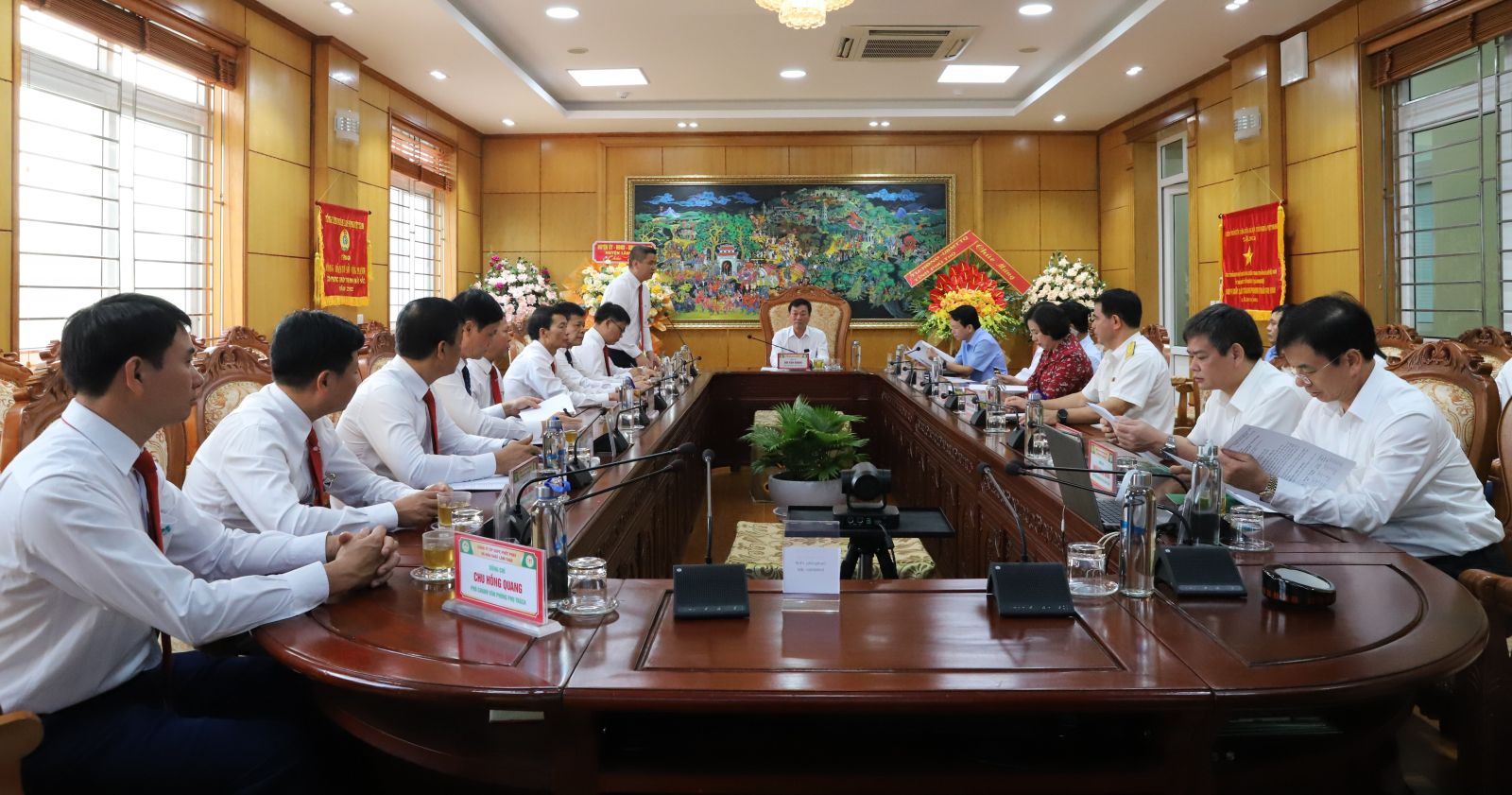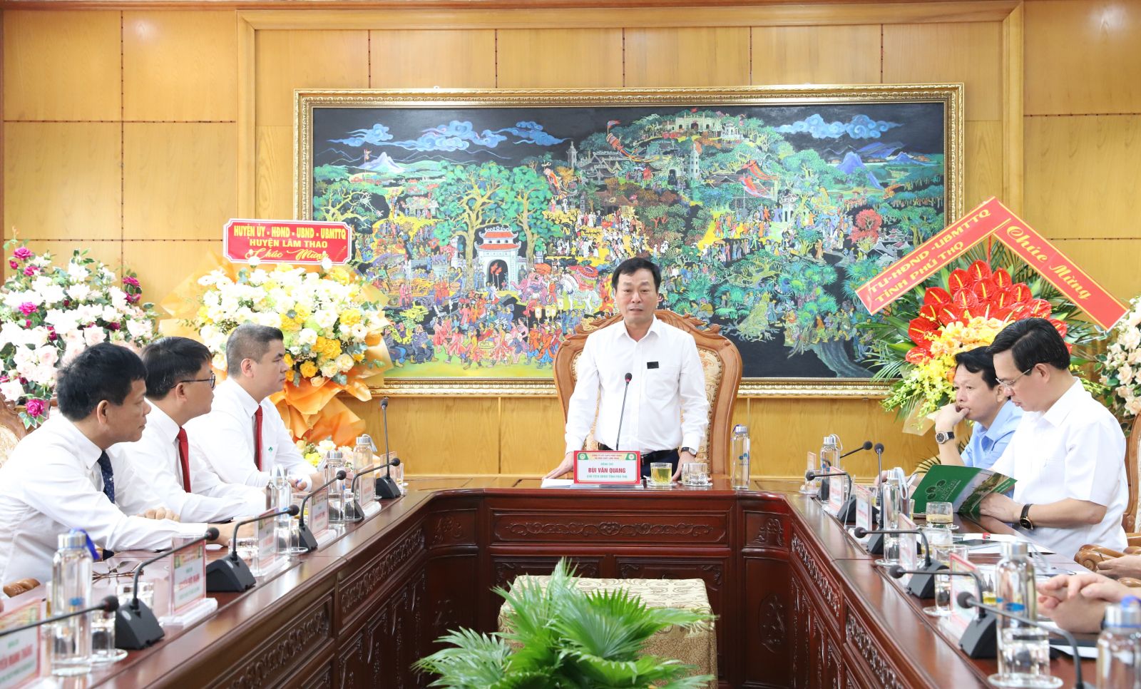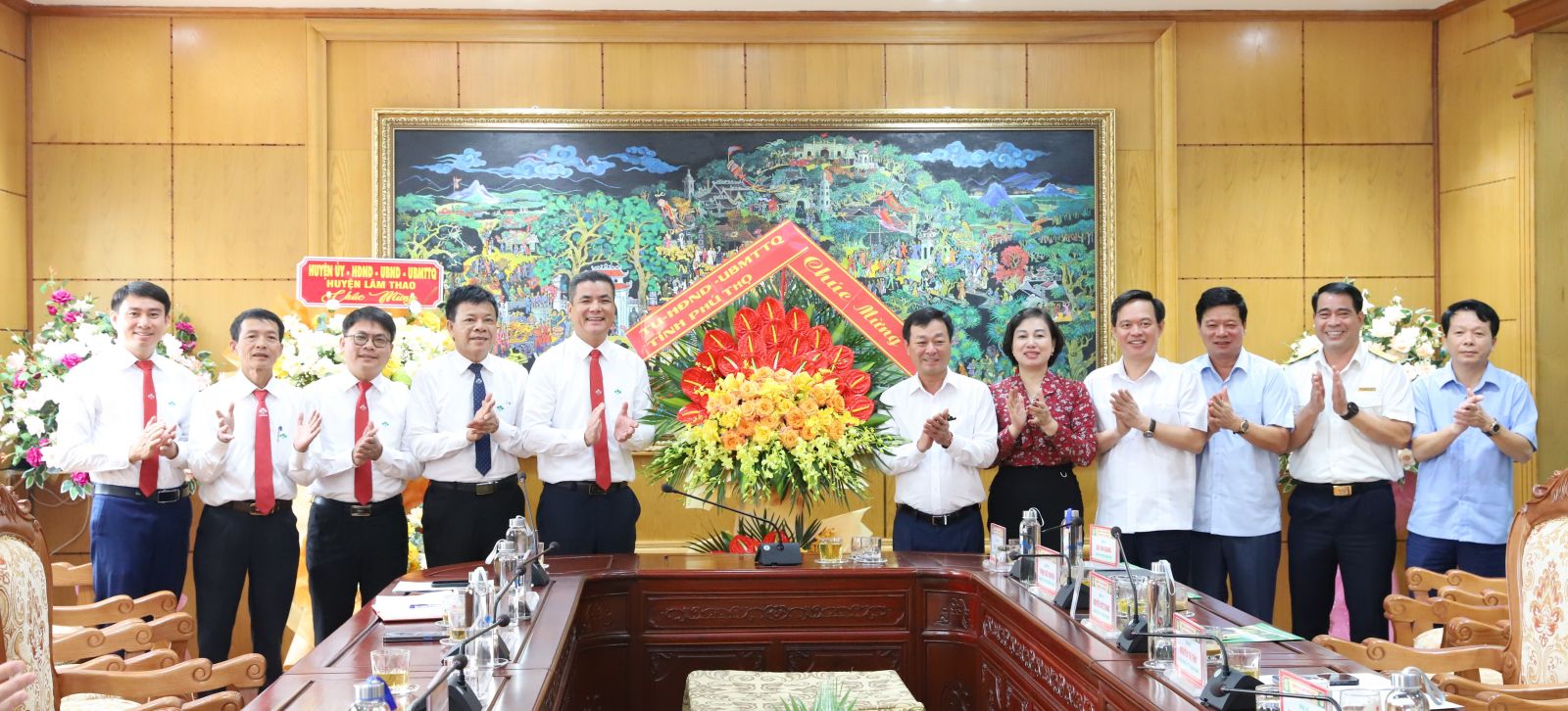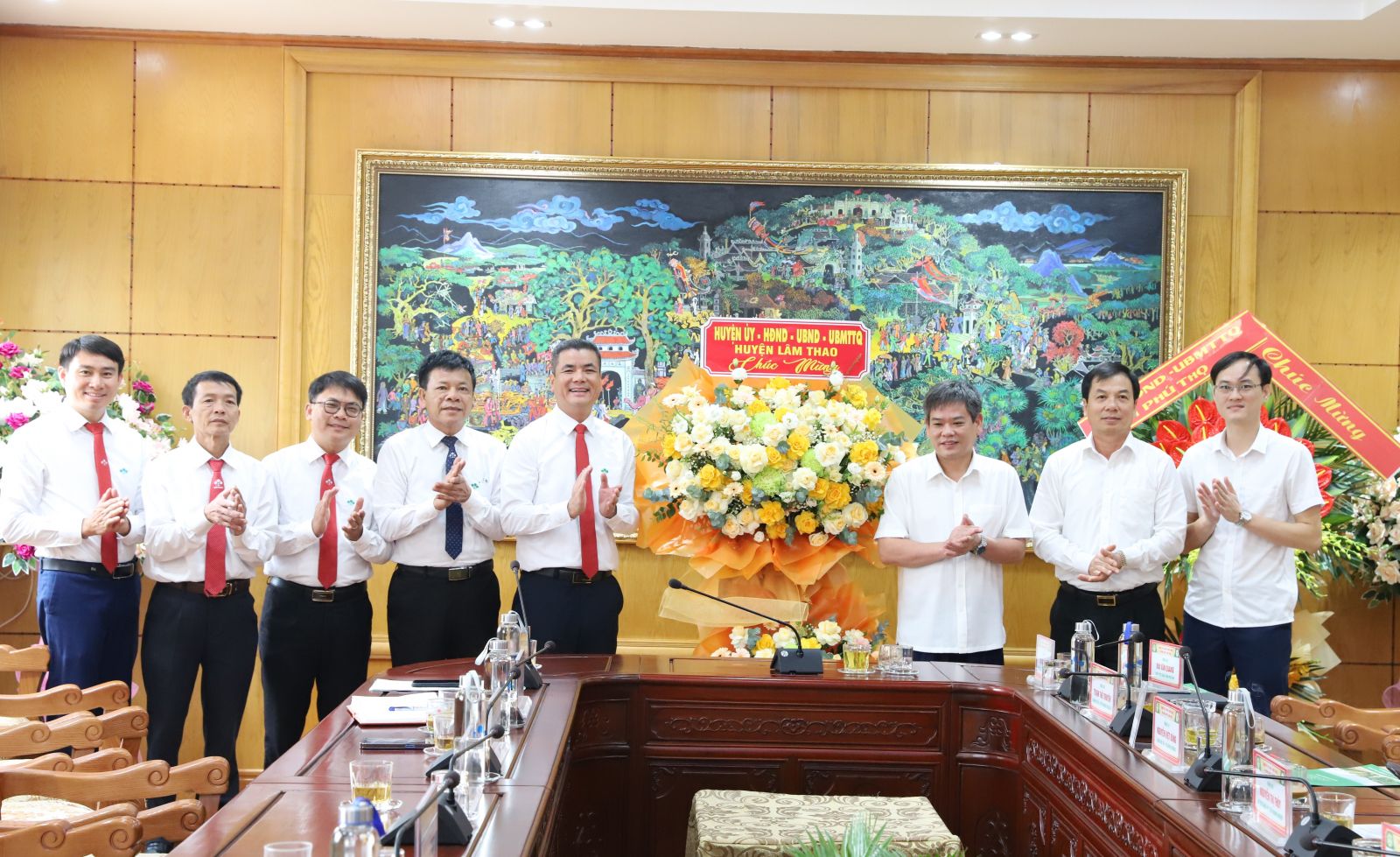 Cũng trong dịp này, thay mặt huyện Lâm Thao, đồng chí Nguyễn Quang Anh, Bí thư Huyện uỷ và đồng chí Khuất Đăng Khoa, Chủ tịch UBND huyện Lâm Thao đã tặng hoa chúc mừng thành tích Công ty và chúc mừng Công ty nhân ngày Doanh nhân Việt Nam.