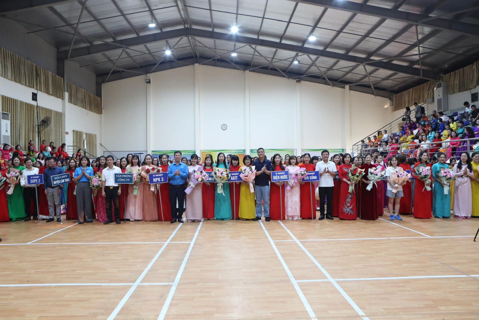 Tới dự chương trình có đồng chí Nguyễn Huy Thông, Chủ tịch Công đoàn Công nghiệp Hóa chất Việt Nam (CNHCVN ) cùng các đồng chí Lãnh đạo các ban của Công đoàn CNHCVN; đồng chí Thiều Thị Thanh Thủy, Chủ tịch Hội liên hiệp phụ nữ huyện Lâm Thao. Về phía Công ty có đồng chí Phạm Thanh Tùng, Bí thư Đảng ủy, Tổng Giám đốc Công ty; các đồng chí trong Ban Lãnh đạo Công ty; đại diện các tổ chức đoàn thể và hơn 300 vận động viên, diễn viên đến từ 24 đơn vị trong toàn Công ty; đặc biệt có sự tham gia của 42 hội viên Hội LHPN huyện Lâm Thao trong màn đồng diễn Áo dài.