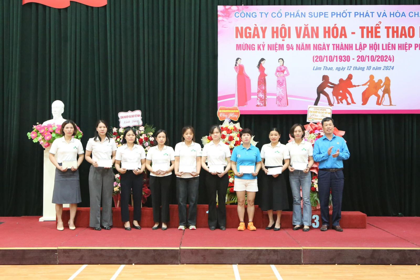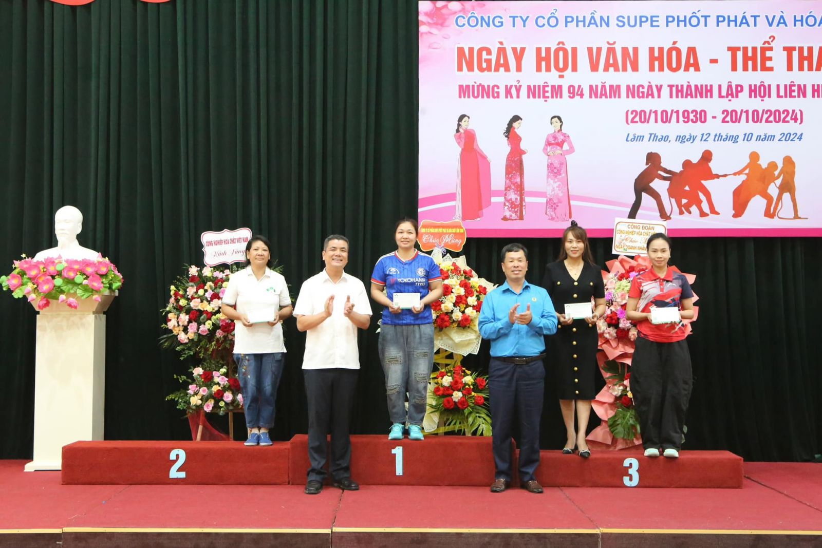 Thiết thực chào mừng kỷ niệm 94 năm thành lập Hội Liên hiệp Phụ nữ Việt Nam (20/10/1930 - 20/10/2024), sáng ngày 12 tháng 10 năm 2024, tại Khu liên hiệp Văn hóa thể thao Supe, Công ty cổ phần Supe Phốt phát và Hóa chất Lâm Thao tổ chức thành công chương trình: “NGÀY HỘI VĂN HÓA - THỂ THAO NỮ CÔNG NHÂN LAO ĐỘNG SUPE”.