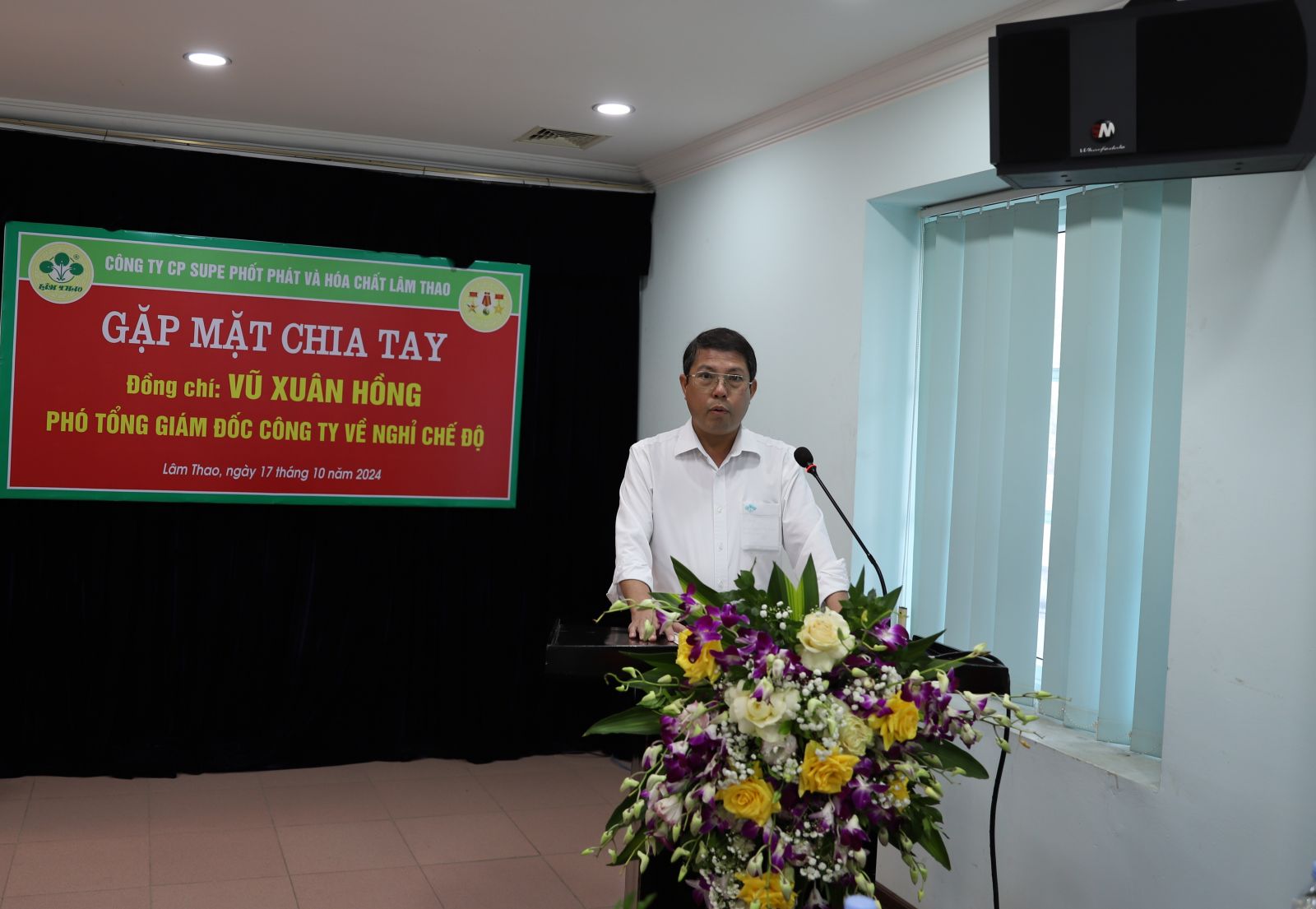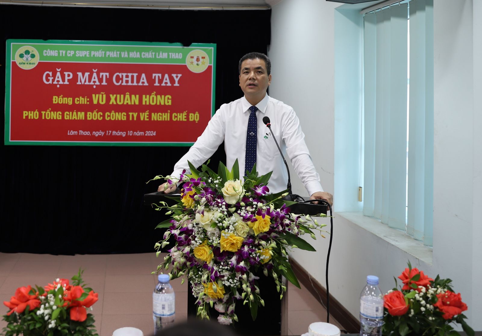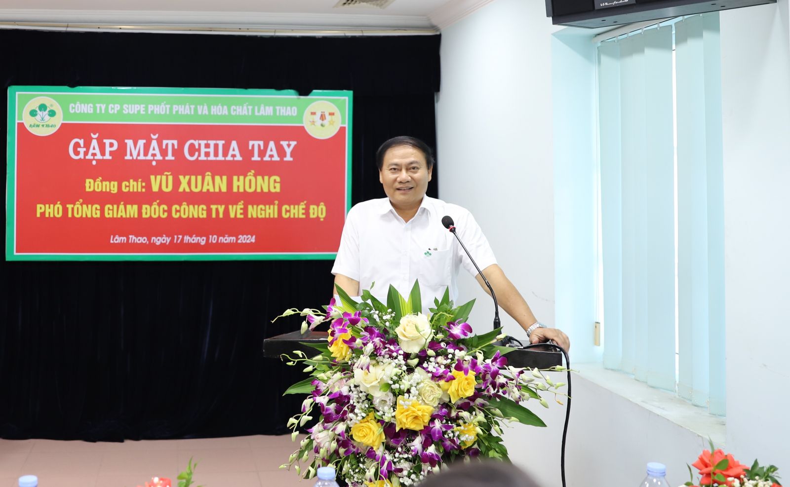 Chiều ngày 17 tháng 10 năm 2024, Công ty cổ phần Supe Phốt phát và Hoá chất Lâm Thao tổ chức gặp mặt, chia tay đồng chí Vũ Xuân Hồng, nguyên Phó Tổng Giám đốc Công ty về nghỉ hưu theo chế độ của Nhà nước.