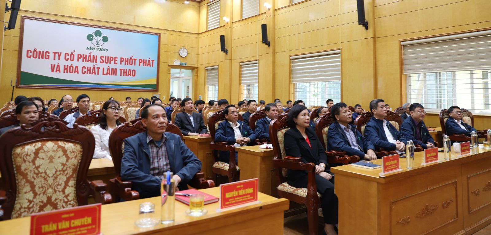 Kết nối trực tuyến đến Hội nghị, tại điểm cầu Công ty CP Supe Phốt phát và Hoá chất Lâm Thao tham dự có đồng chí Phạm Thanh Tùng, Bí thư Đảng uỷ, Tổng Giám đốc; các đồng chí Uỷ viên Ban chấp hành Đảng bộ Công ty; Lãnh đạo, chuyên viên các Ban tham mưu, giúp việc Đảng uỷ Công ty; Bí thư, Phó Bí thư các Chi, Đảng bộ trực thuộc Đảng bộ Công ty; Trưởng Ban Kiểm soát; Chủ tịch, Phó Chủ tịch Công đoàn; Bí thư, Phó Bí thư Đoàn Thanh niên Công ty; Chủ tịch, Phó Chủ tịch Hội Cựu Chiến binh Công ty; Trưởng Ban nữ công Công ty; Thủ trưởng các đơn vị trong toàn Công ty; Đại diện Lãnh đạo Trường Cao đẳng Công nghiệp Hoá chất.